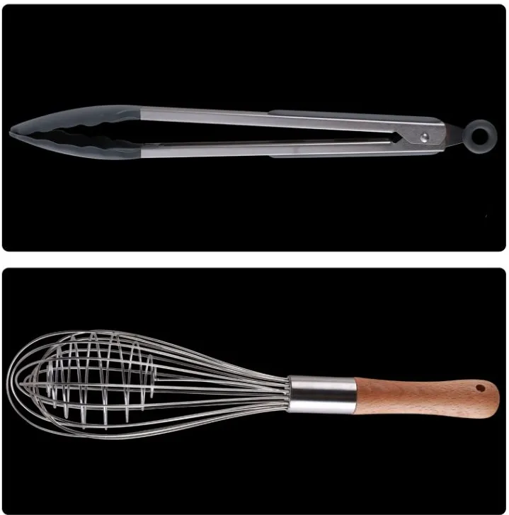 Spaghetti spoon: 32x6cm/83g Dense spoon: 32.5x7cm/89g Spatula: 31.5x5.5cm/78g Whisk: 29x7cm/92g 12-inch food clip: 34.5cm/127g