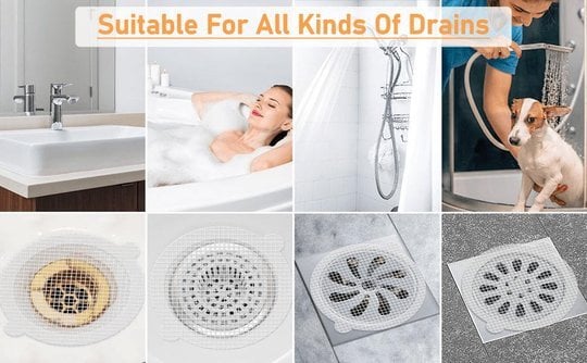 💦Disposable Drain Hair Catcher: It is the safest way to protect your drain from blocking the drain pipe and building up molds on the drain cover, also a good solution for hair catching. No more cleaning and clogging