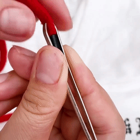 With the tool that easily and quickly grips the elastic ribbon, drawstrings, and cording. The clips have special