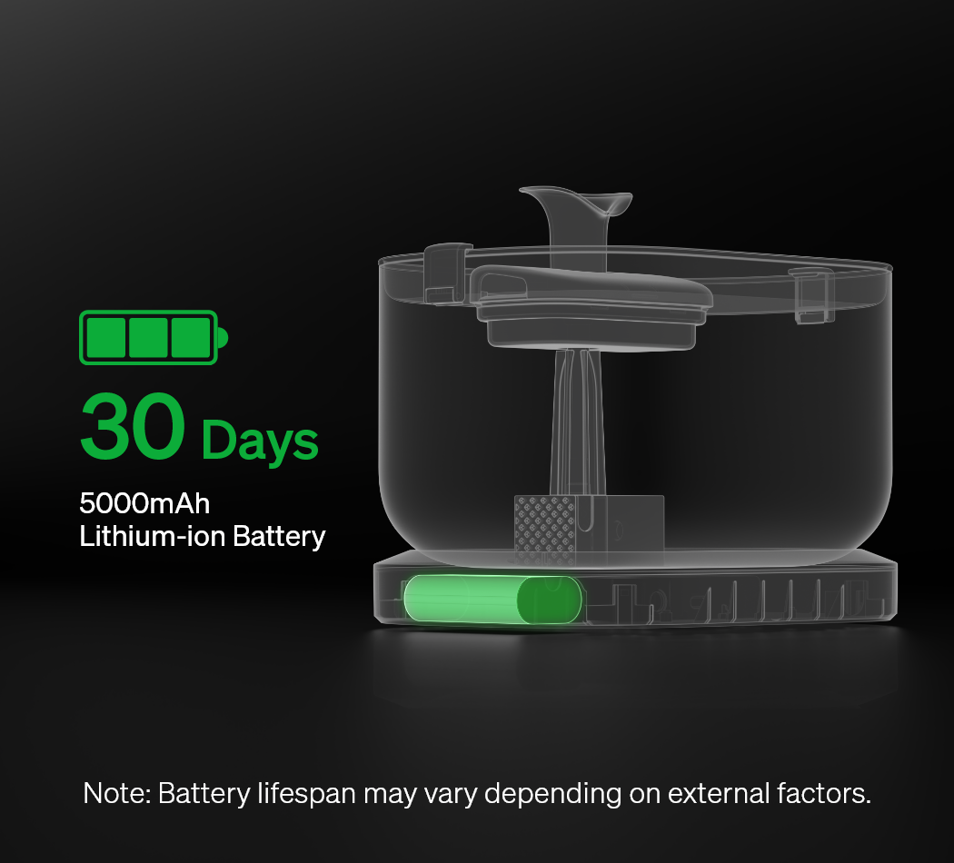 Cordless Power SupplyEnjoy cordless freedom thanks to the fountain battery's long-lasting 30 day lifespan.