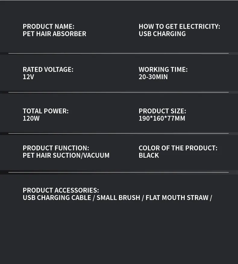 Product Description: Keep your home fur-free and clean with our Dual-Use Pet Hair Vacuum Cleaner, designed specifically for dogs and cats. This handheld vacuum offers powerful suction for both dry and wet messes, making it the perfect tool for removing pet hair from carpets, upholstery, and car interiors.
