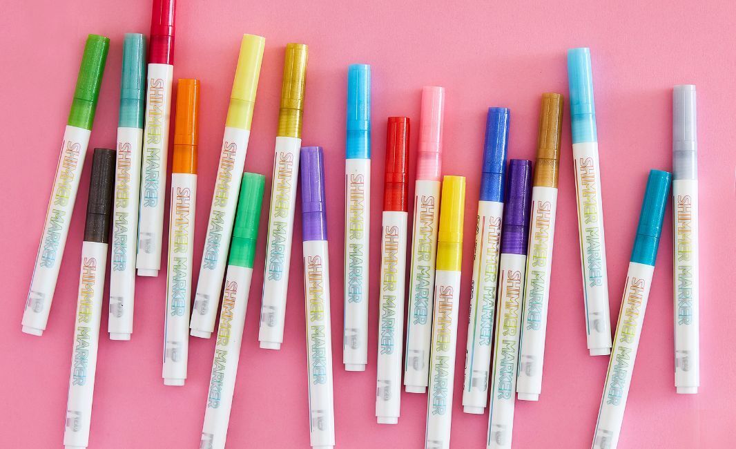 Get your Shimmer Markers started by giving them a shake with the cap on and then pressing down the tip into paper until the ink flows down