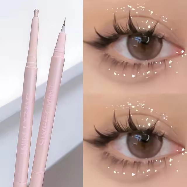 Achieve a radiant, wide-eyed look with the Double Ended Lying Silkworm Pencil Highlighter. Designed with a slim and soft tip, this dual-ended makeup pen effortlessly adds a natural highlight under your eyes, giving them a larger, more awake appearance. The lightweight formula glides on smoothly, enhancing your eye makeup with precision and ease. Perfect for everyday use or special occasions, this highlighter stick provides a subtle glow that makes your eyes pop. Whether you're aiming for a soft, natural look or a more dramatic effect, this versatile makeup tool is a must-have in your beauty routine.