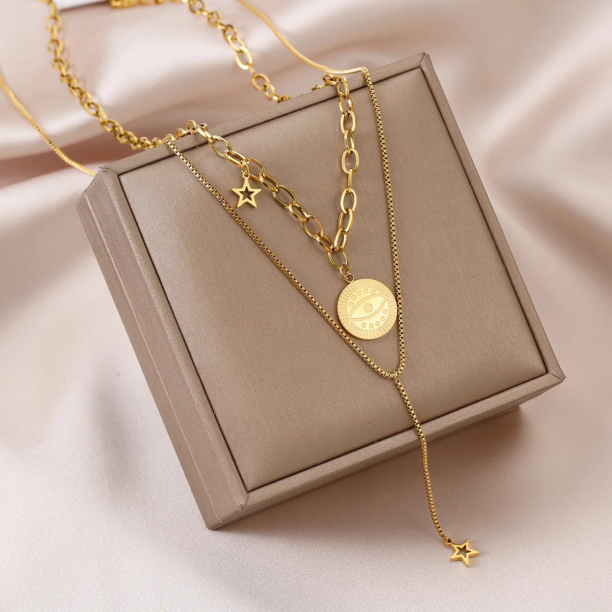 Double-layer God's Eye Titanium Steel Necklace