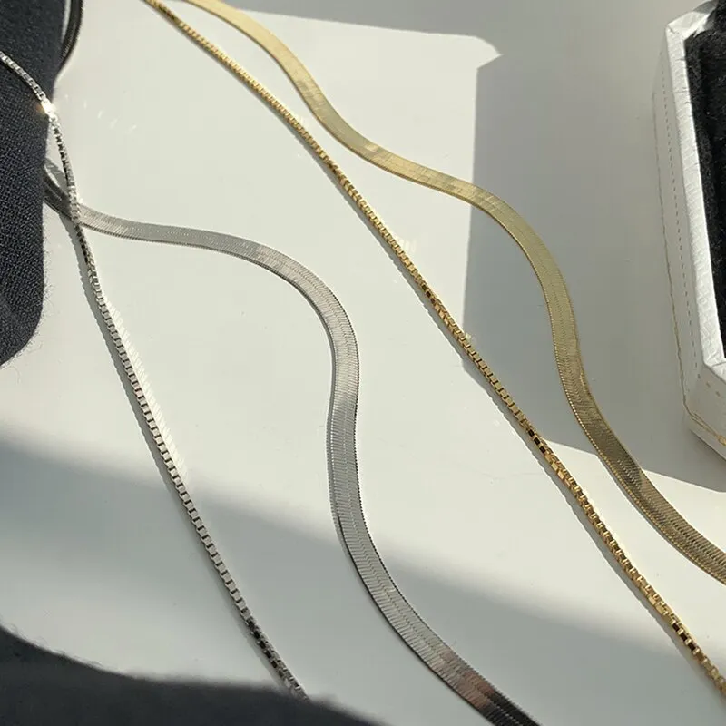 Double Layer Snake Bone Sterling Silver Hip-hop Personality Retro Stacking Necklace Women
