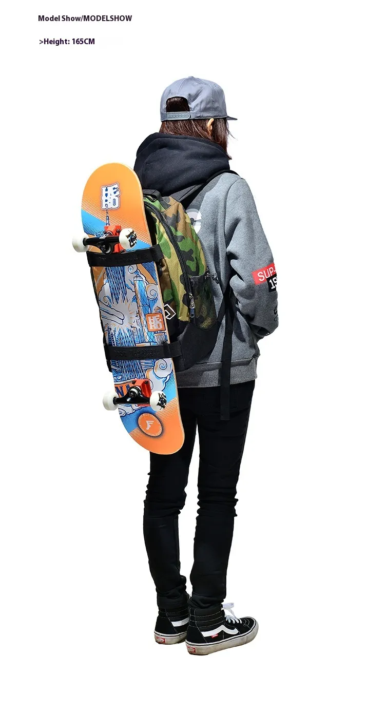 Designed with skaters in mind, the Double-Shoulder Skateboard Large-Capacity Backpack is the ultimate companion for carrying your skateboard and other essentials. Featuring secure straps for double rocker skateboards or punching boards, spacious compartments, and a durable design, this backpack is ideal for urban commuting, skate parks, or travel. Its multi-functional features make it a must-have for skateboard enthusiasts of all levels.