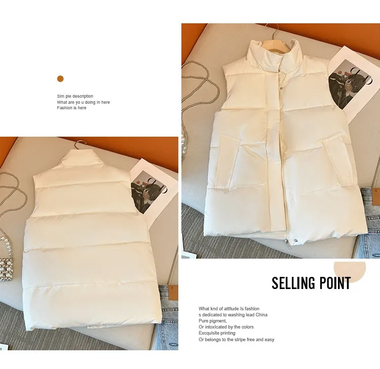 Stay cozy and stylish this autumn and winter with the Down Cotton Vest for women. Featuring a chic, short design, this Korean-style vest offers a perfect blend of warmth and fashion. Its lightweight, down-filled construction ensures you stay insulated without the bulk, while the soft cotton exterior provides a comfortable, breathable fit. Ideal for layering over sweaters or long-sleeve tops, this vest is versatile enough for both casual outings and more polished looks. Perfect for those chilly days, it’s a must-have addition to your winter wardrobe.