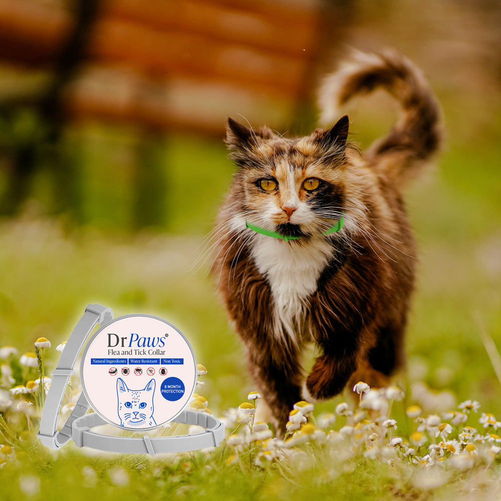 DrPaws® Flea and Tick Free Collar stands out as a natural, chemical-free alternative to conventional pet collars. Suitable for all sizes and waterproof, it offers effective, non-toxic protection without a prescription. Ideal for eco-conscious cat owners, it's a safer, environmentally friendly choice for your pet's well-being.
