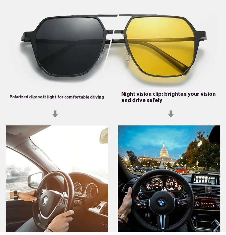 Driving Men's Three-in-one Magnetic Aluminum Magnesium Glasses