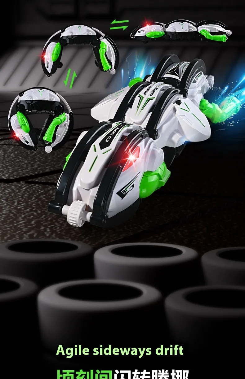 This unique RC car features a six-wheel design, setting it apart from traditional four-wheel remote control cars. The additional wheels offer better stability and control, which enhances its flipping and drifting capabilities. Whether your child is an RC car enthusiast or simply loves adrenaline-packed play, this six-wheel drift car offers an experience like no other!