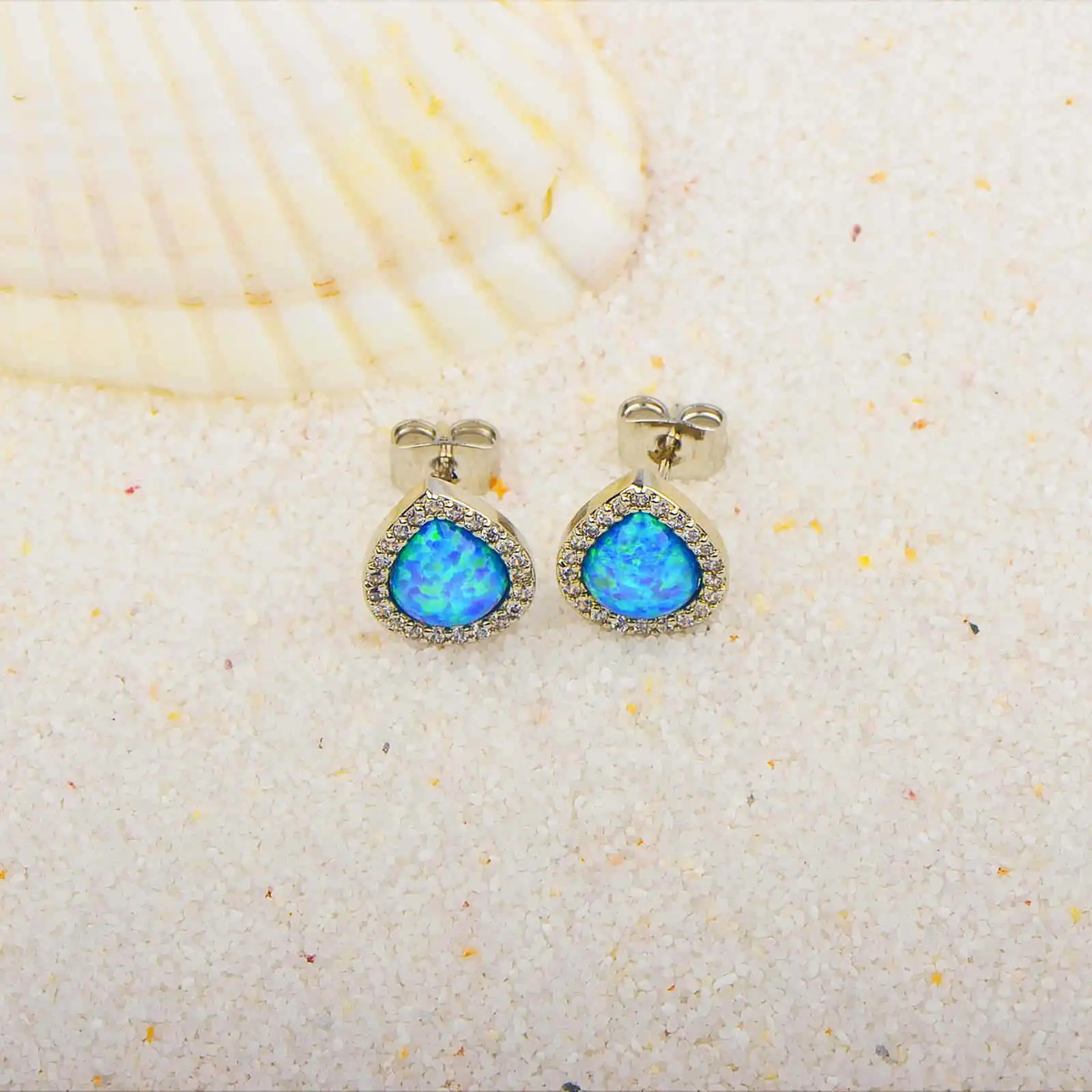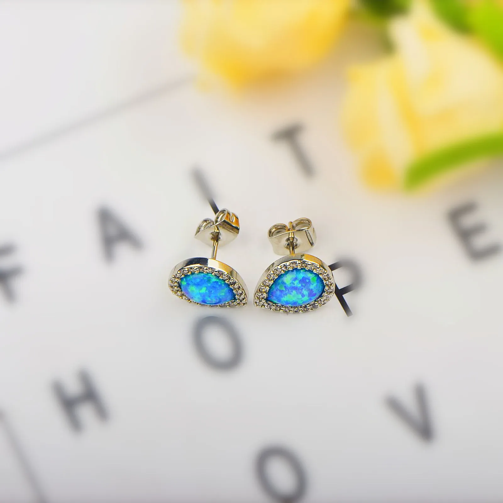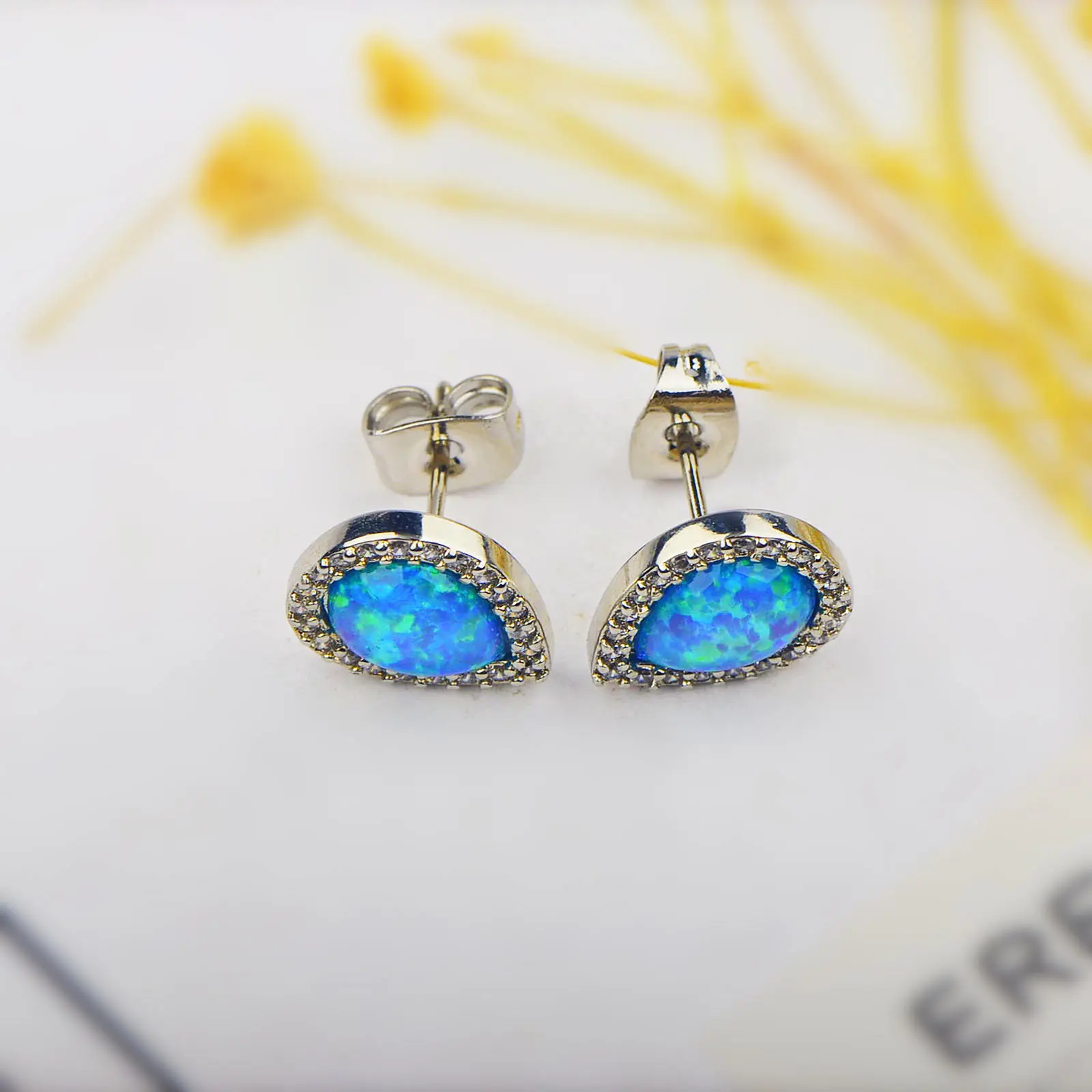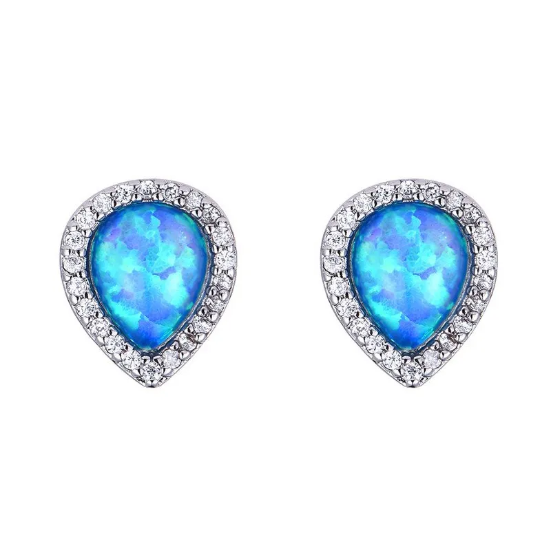 Drop Shape Blue Opal Earrings