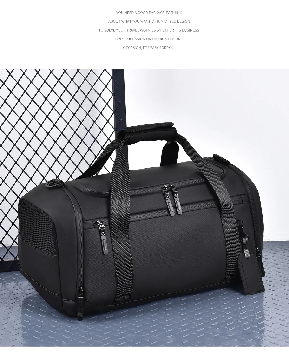 - Whether you're heading to a business meeting or a weekend getaway, this bag has the capacity and organization features to accommodate all your essentials. The multiple compartments make it easy to access your belongings quickly, and the sleek, professional design ensures you look good while carrying everything you need.