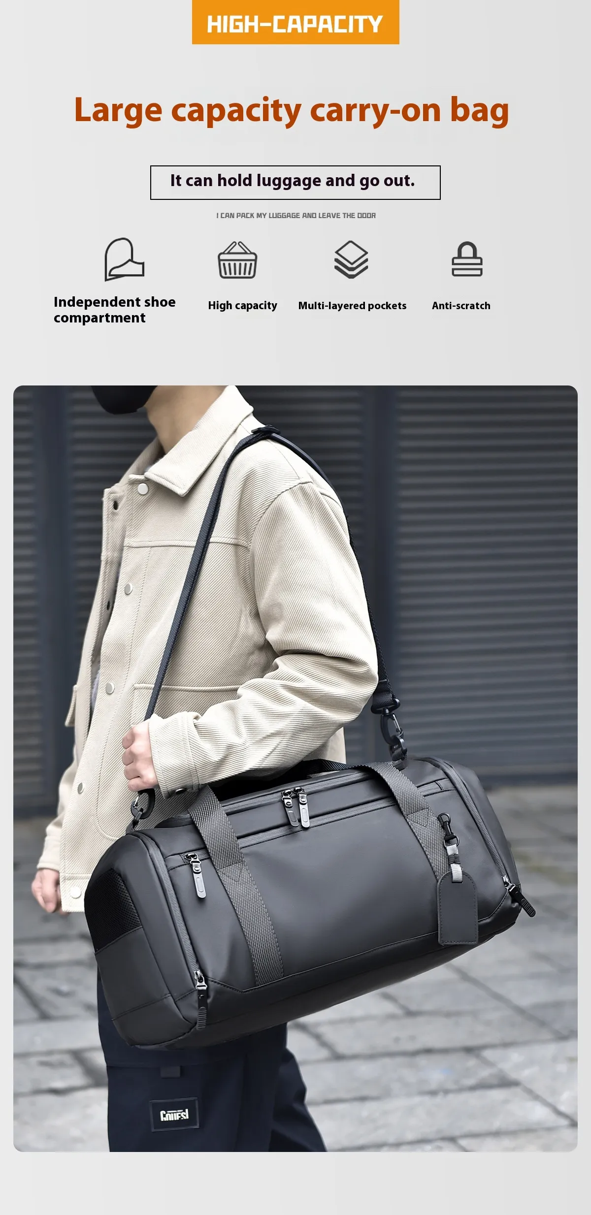 - While highly functional, this travel luggage bag is also stylish, making it the perfect accessory for any traveler. With a sleek design and a neutral color palette, this bag complements any travel outfit, making it equally suitable for business trips or leisure vacations. Whether you're going to the airport or a weekend getaway, this bag is sure to turn heads.