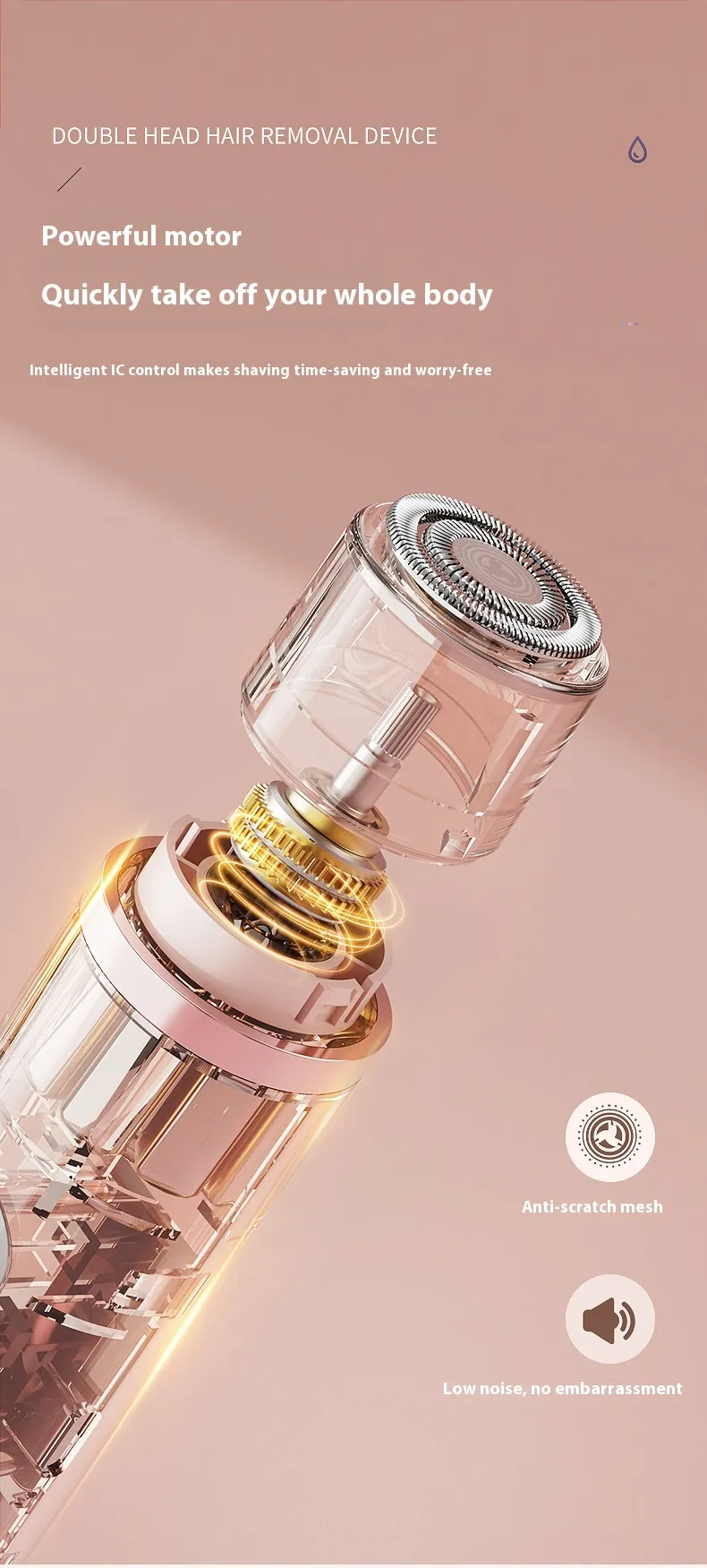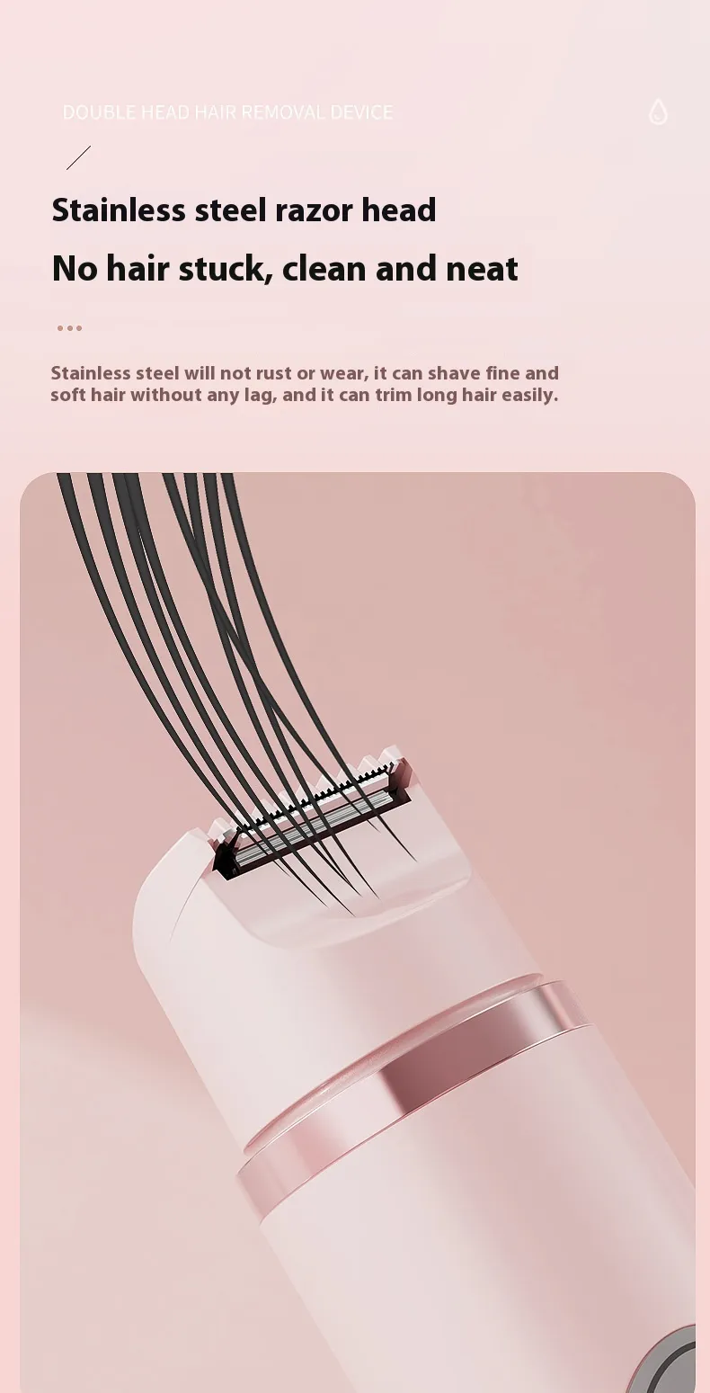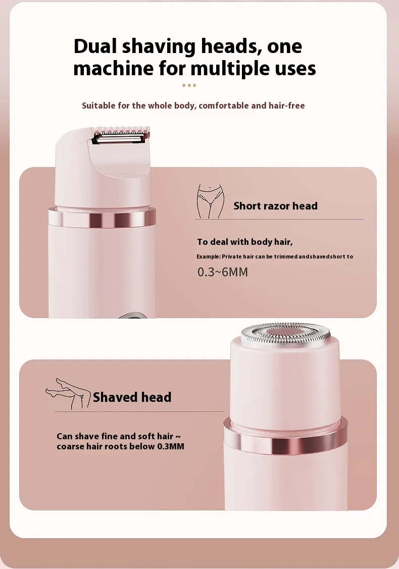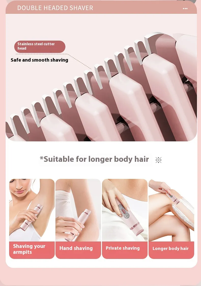 Dual-Head Electric Shaver Painless Women's Epilator Bikini Hair Removal Device Automatic Hair Trimmer Underarm Facial Lips Leg