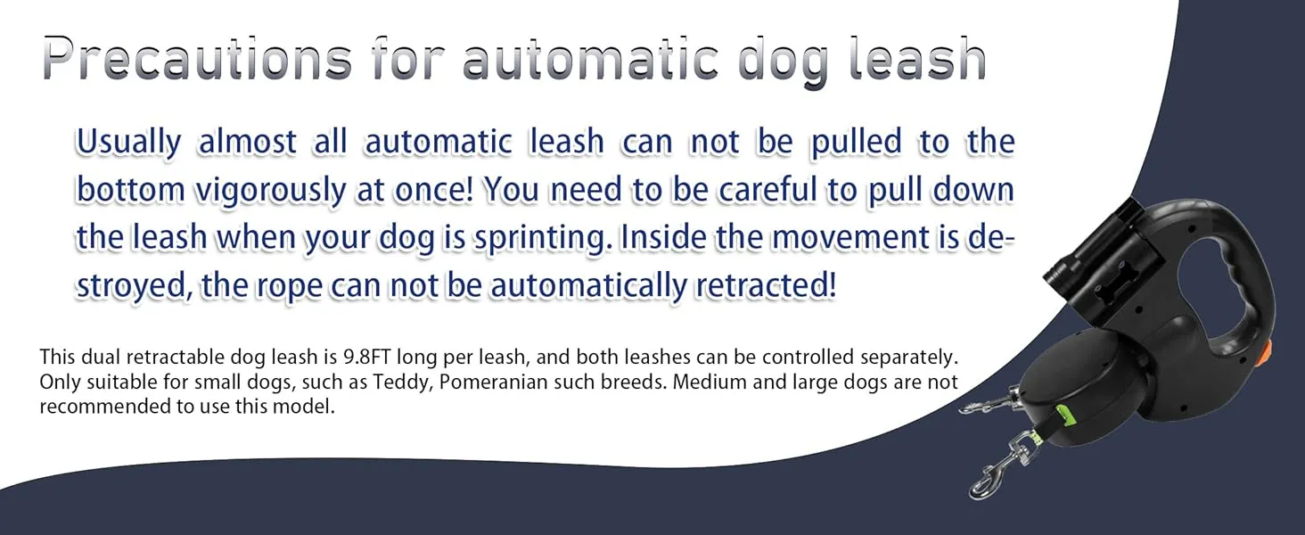 EASY ONE-BUTTON CONTROL- The dual retractable dog leash features an easy one-button control system. Simply push forward to lock the leash at the desired length and push backward to retract. This intuitive feature makes the dog leash for small dogs highly user-friendly. Available in three colors, the double dog leash combines practicality with style.