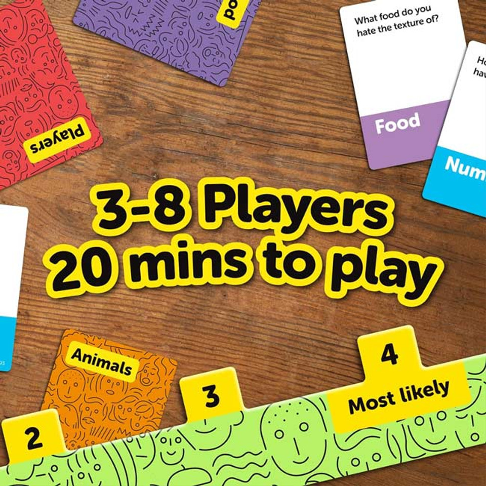 lighthearted questions. It’s an ideal game to play with people you know well or even with new acquaintances as an easy way to get the