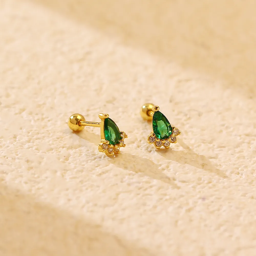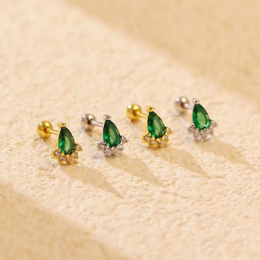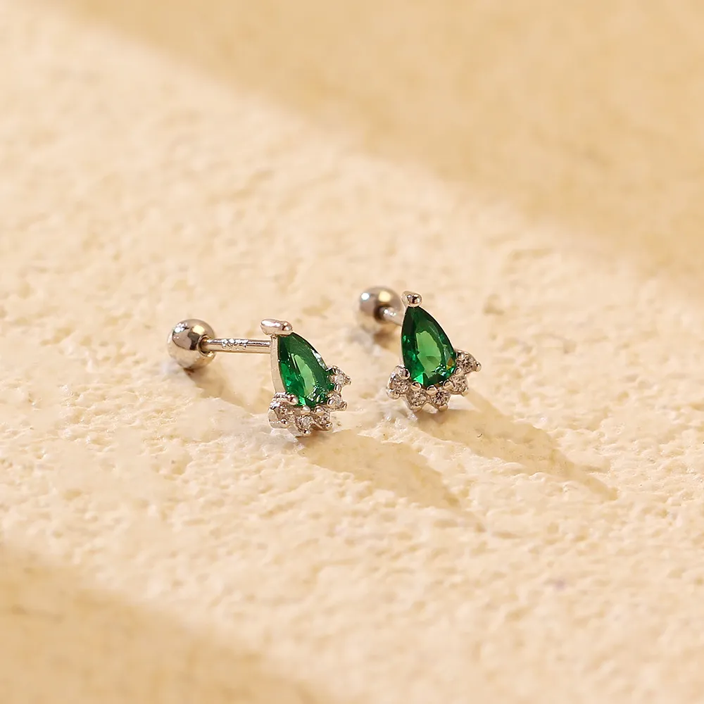 Where to Wear Ear Studs Silver Emerald Diamond Screw
