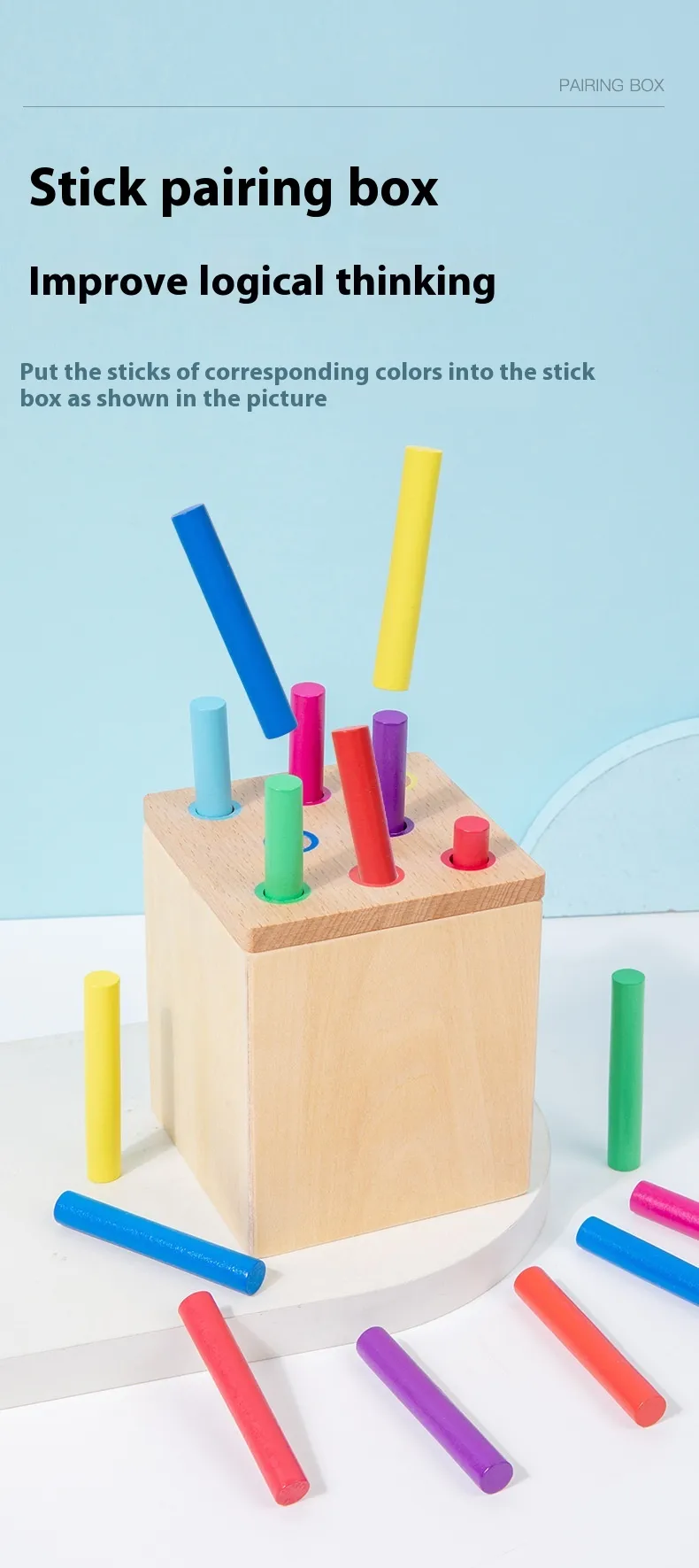 This teaching aid encourages children to classify and sort objects by color, shape, and size. This hands-on activity promotes logical thinking, problem-solving skills, and fine motor coordination.