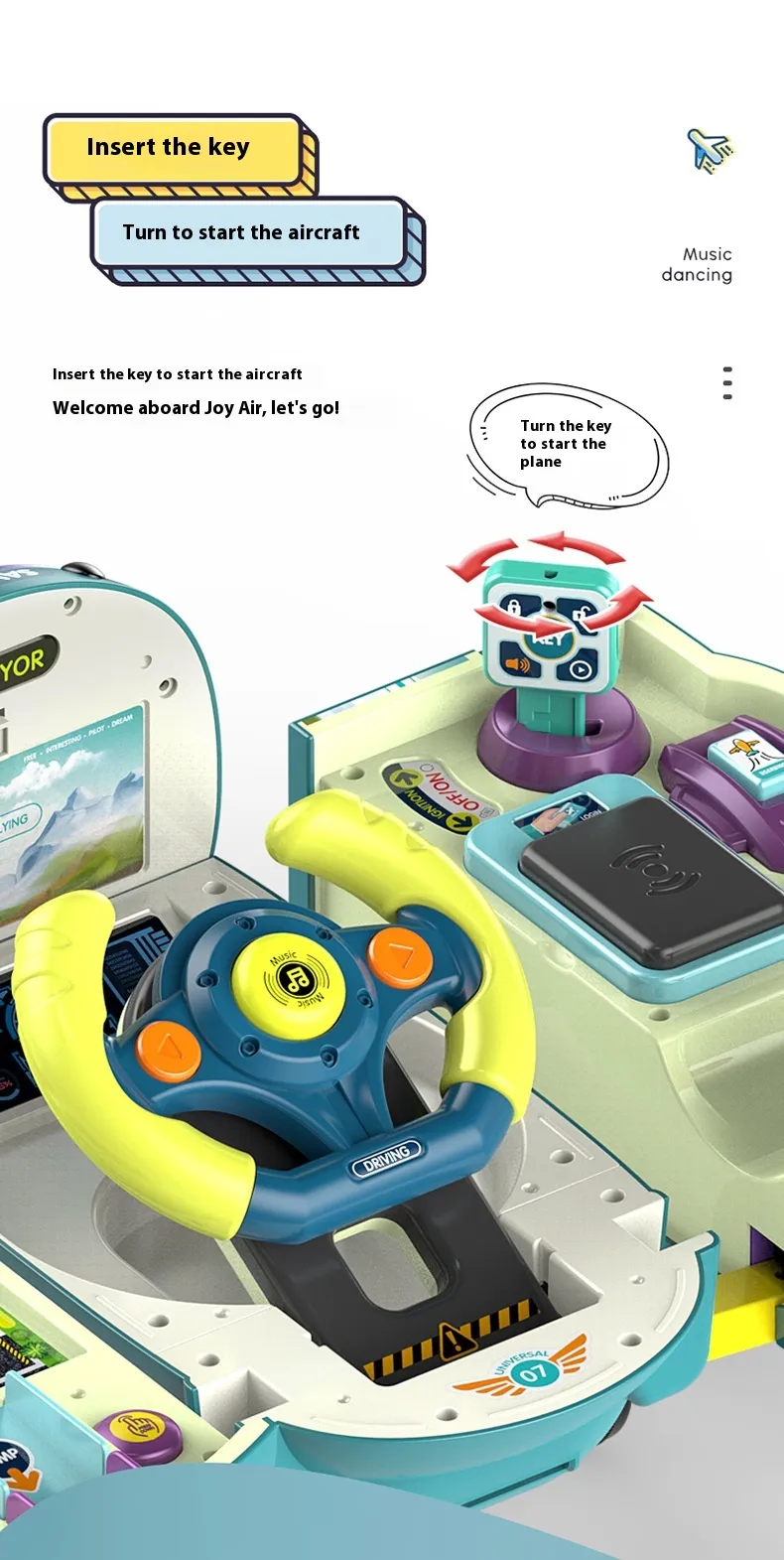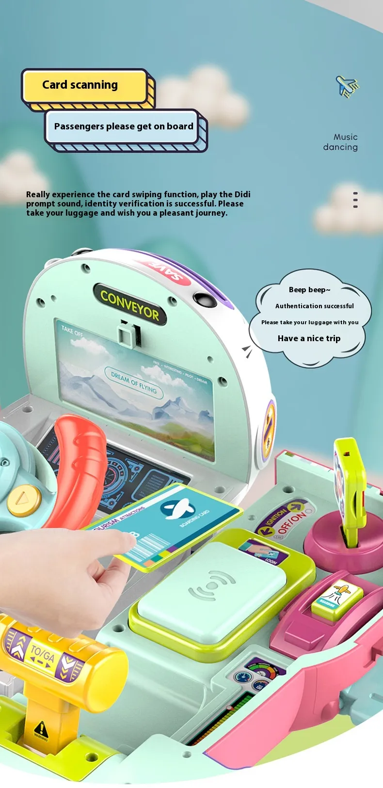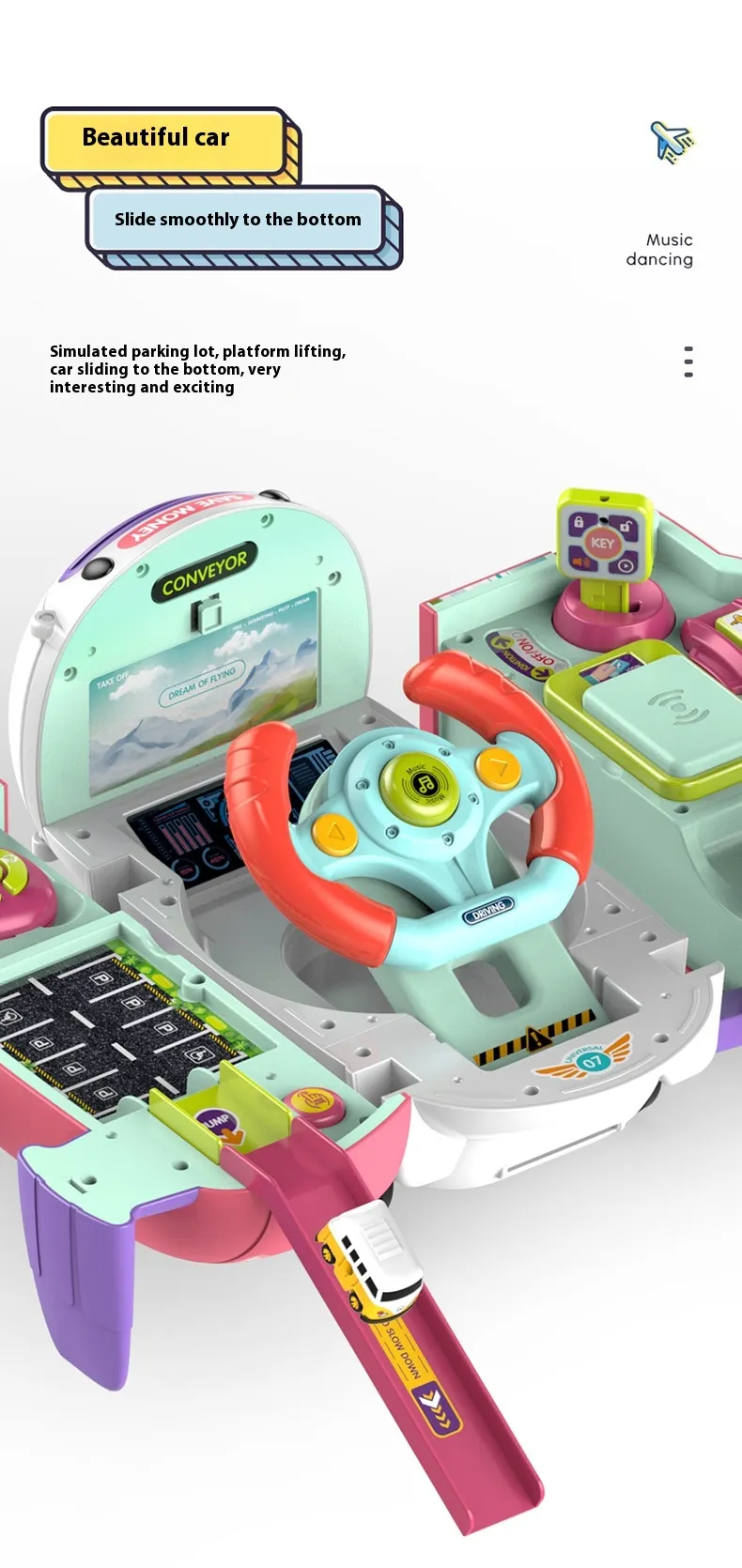 that mimics driving experiences, complete with lights and sounds. Children can engage with this feature by using their imagination,