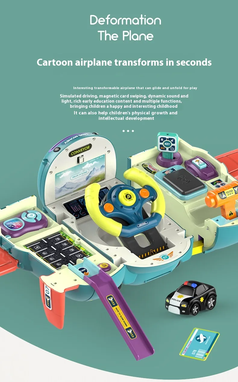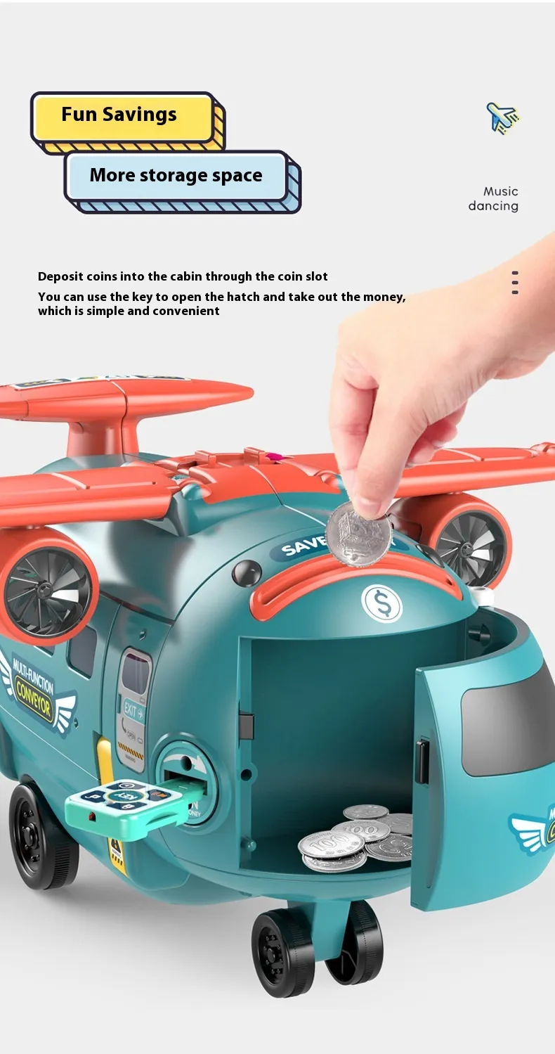 The Early Education Transformation Machine Lighting Music Multi-mode Simulation Driving Children's Fun Coin Bank is an innovative and interactive toy designed to captivate young minds while teaching them valuable lessons about money and play. This multifunctional toy combines early childhood education with entertainment, offering a unique blend of lighting effects, music, and driving simulation. Perfect for children aged 3 and up, it encourages both imaginative play and the development of essential life skills, such as savings and financial responsibility, all while being fun and engaging.