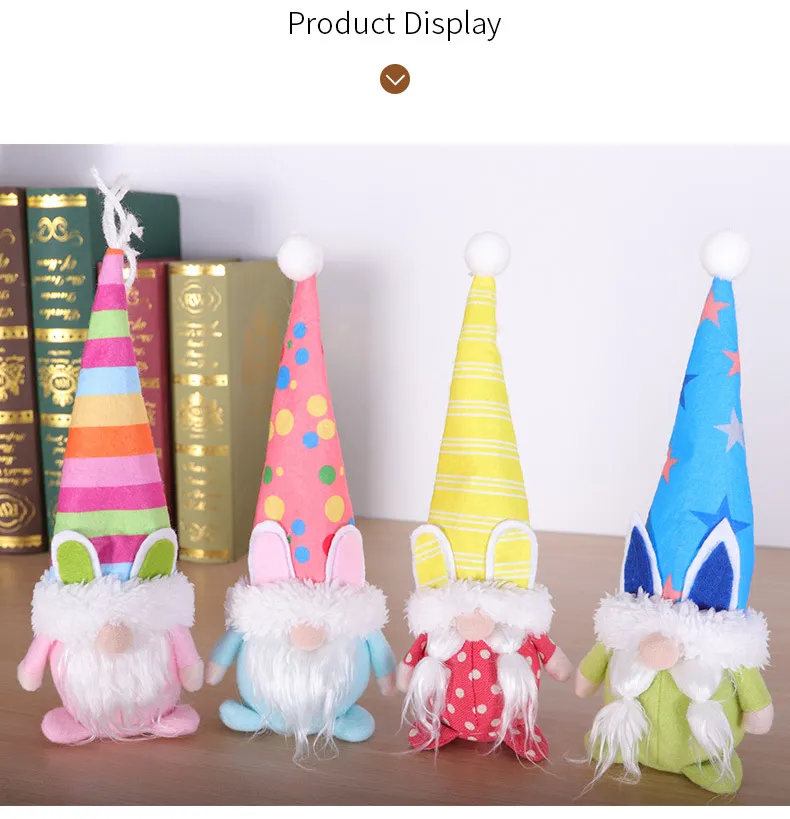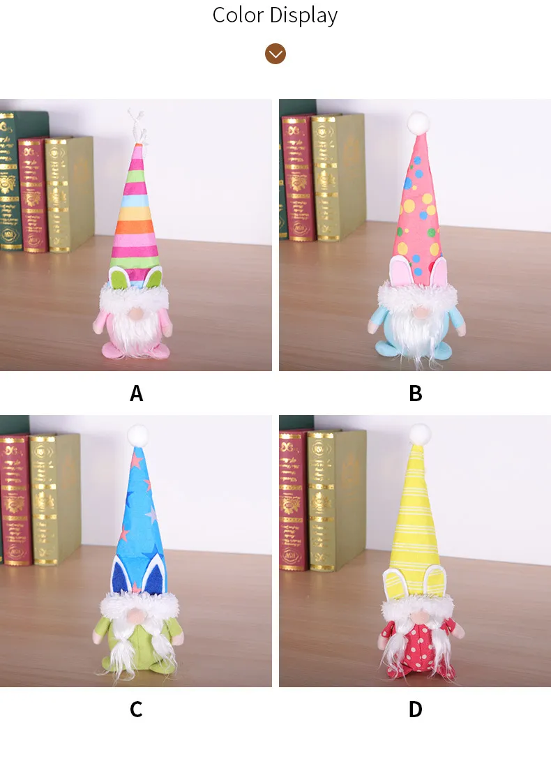 The Easter Decorative Creative Faceless Standing Posture Pointed Hat Rabbit Doll Ornaments offer a fun, artistic, and unique way to celebrate the season. Their charming, faceless design combined with their colorful pointed hats and standing posture make them perfect for Easter and spring décor. Whether you're adding a whimsical touch to your mantel, creating a fun centerpiece, or gifting them to someone special, these rabbit dolls bring a joyful spirit to your home, making them a must-have for your holiday décor collection.