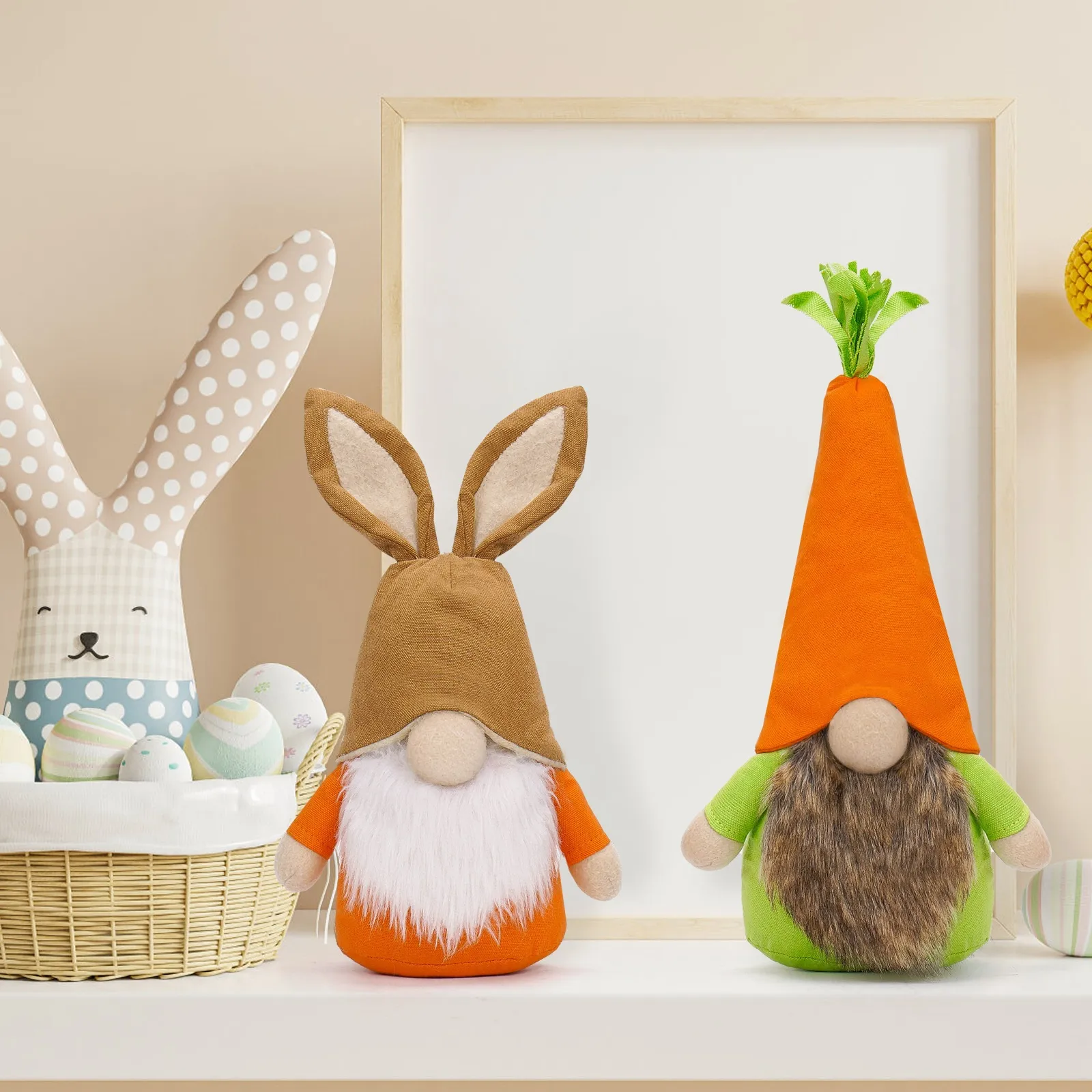 The Easter Doll with Radish & Rabbit Hat is a charming and whimsical decoration designed to bring festive cheer to your home during the Easter season. This handcrafted doll features a playful combination of a rabbit-themed hat and a radish accessory, embodying the spirit of spring and renewal. Its soft, pastel colors and endearing design make it a delightful addition to any Easter display.