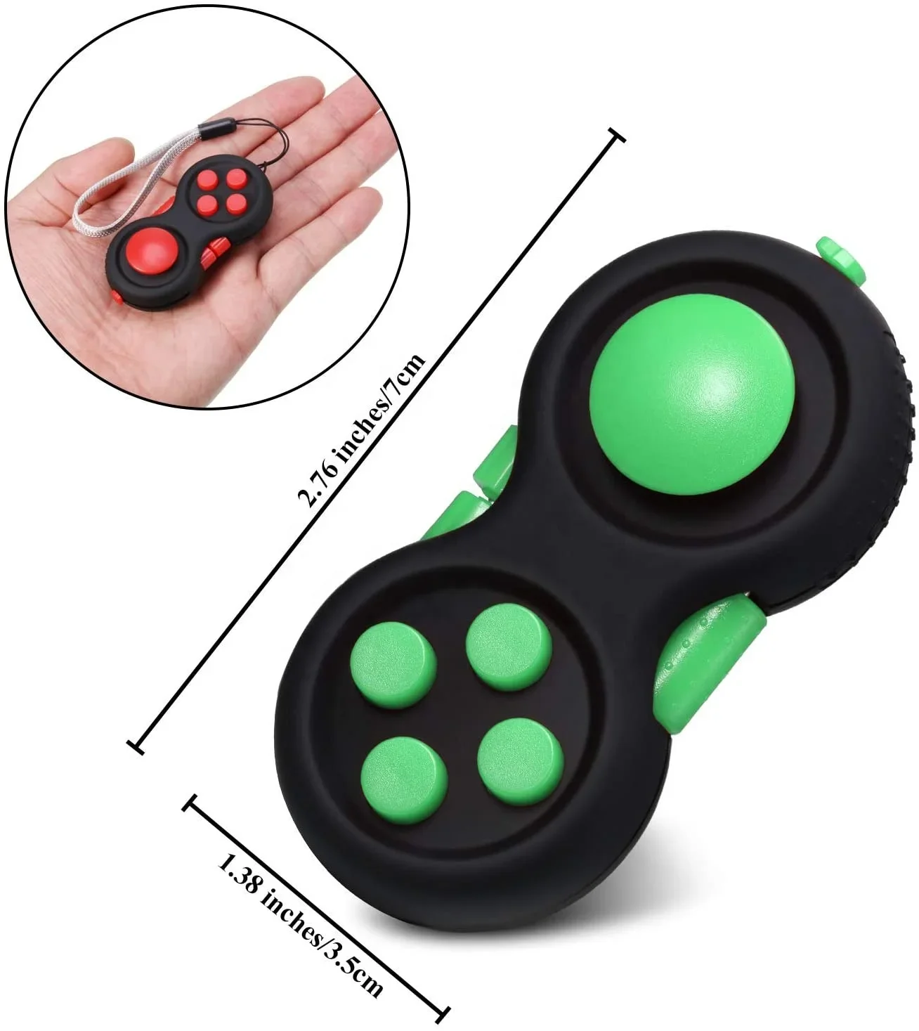 - Features: 8 sides with various fidget options (buttons, switches, rollers, gears, balls)