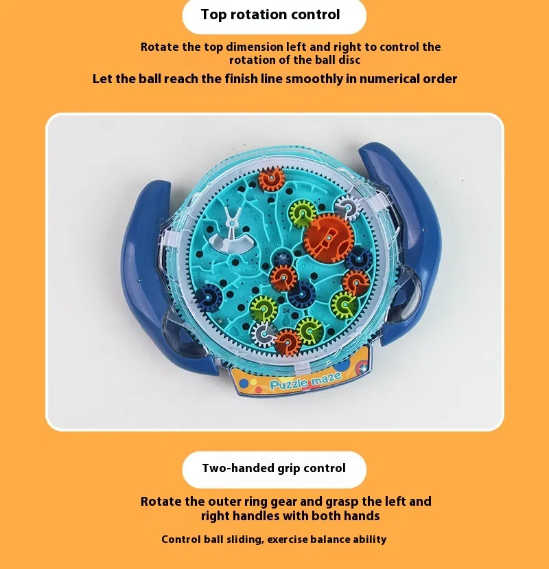 The Educational Gear Maze Entrance Intellectual Ball Concentration Training Toy is a captivating handheld puzzle designed to enhance children's cognitive abilities, fine motor skills, and concentration. This interactive toy features a 3D maze embedded within a transparent sphere, where players guide a small ball through intricate pathways using tilting and rotating motions. As children navigate the maze, they develop problem-solving skills, spatial awareness, and patience, all while enjoying a fun and engaging activity.