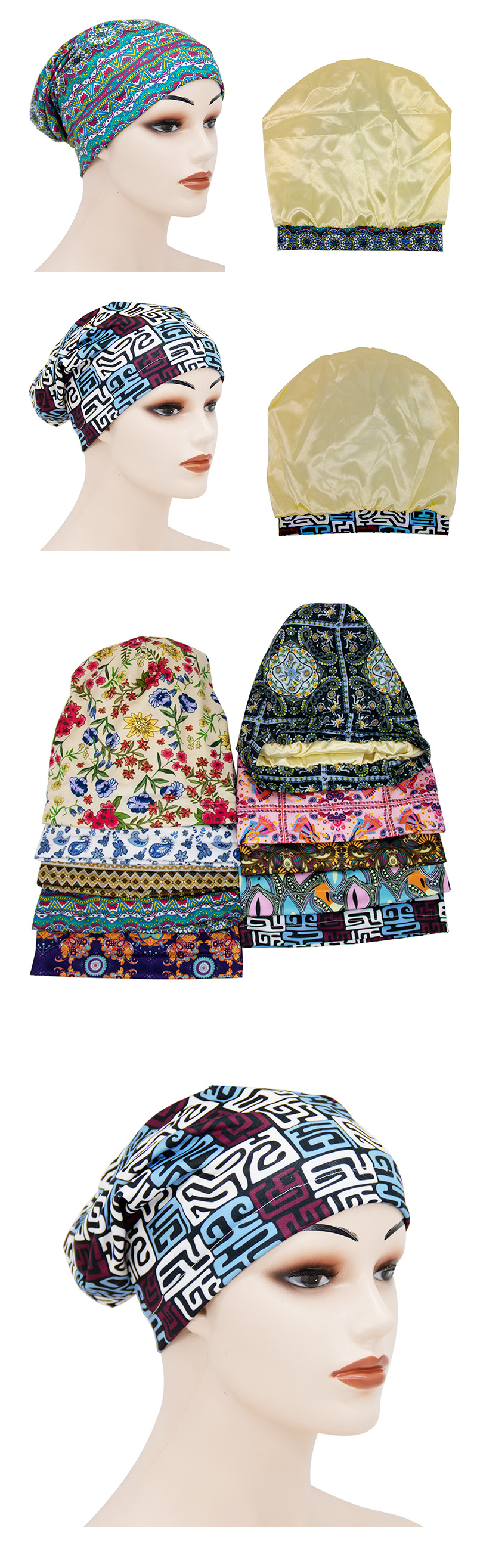 Elastic Cotton Printed Double-layer Lining Satin Nightca