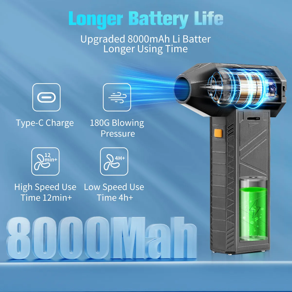The air duster features a fast-charging function, allowing for quick recharge times, and provides extended usage on a single charge, making it reliable for extended cleaning sessions. Ideal for computer maintenance, electronics care, automotive detailing, or general home cleaning, the Electric Air Duster Cordless Keyboard Cleaner is a versatile and powerful tool that makes cleaning easier, faster, and more efficient.