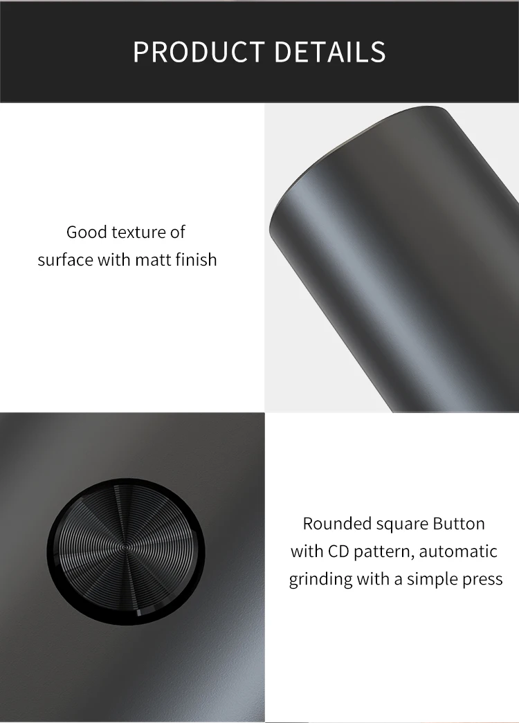 1.Automatic Operation: Our pepper grinder adopts advanced gravity sensing design, No need manual grinding, no buttons to press,great for customers suffering of Chronic Hand Pain. Simply flipped the grinder and you will have fresh ground spices.