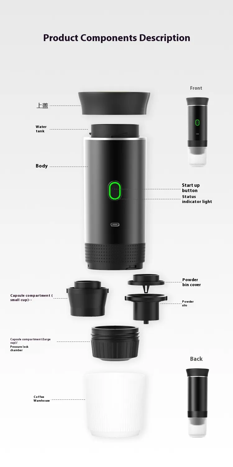 - Product Type: Electric Grinder Coffee Travel Handy 3-in-1 Espresso Maker
