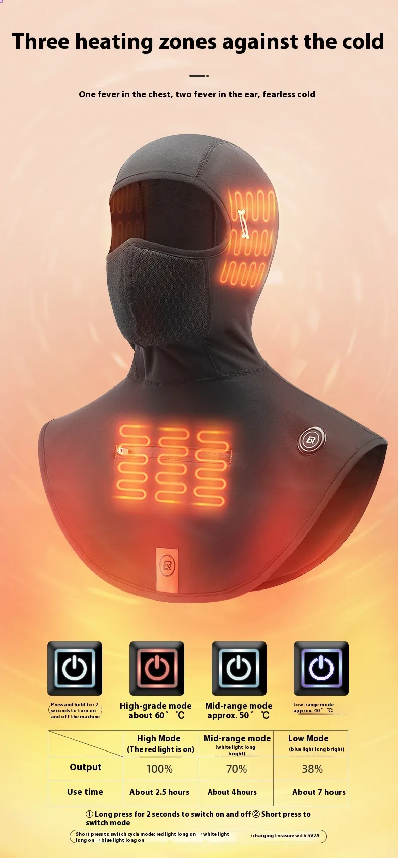 Electric Heating Riding Hat Motorcycle Fleece Warm Mask Windproof Scarf Men