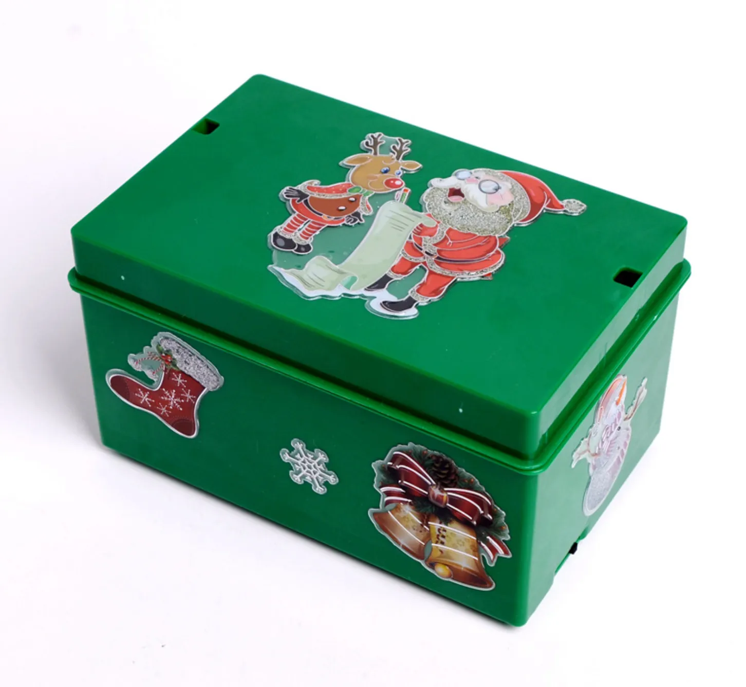 Once the box is activated, it plays cheerful and festive Christmas music, like “Jingle Bells” or “Deck the Halls,” setting a joyful holiday tone.