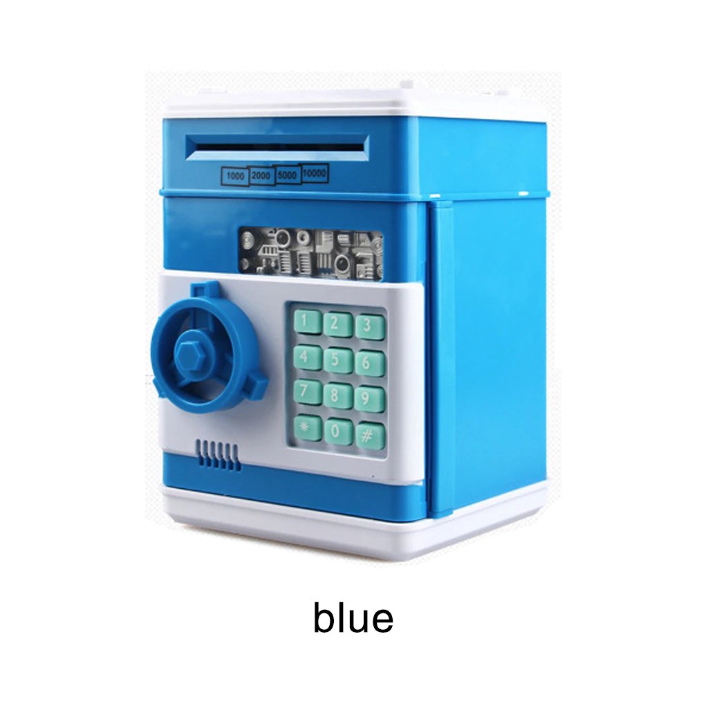 Features: 2 in 1 function: money saving box and password safe box. A unique bank that will not only help your kids save money, but also provide lots of fun! Two sound switchable: beeps sound and voice prompt. Automatic Rolling Banknote: Put your paper money into the roll slot, and it will automatically roll the money into the box.
