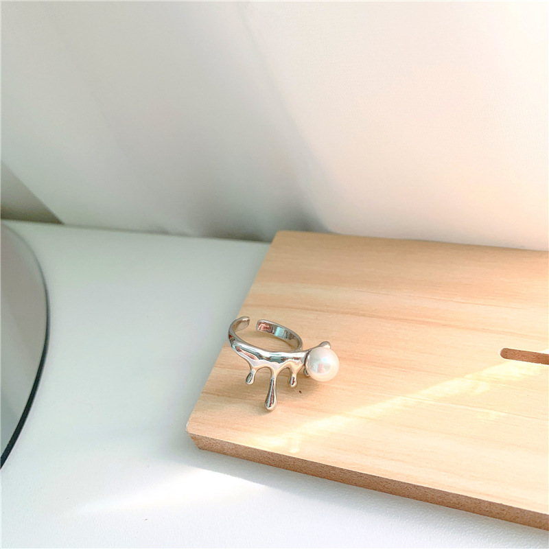 The ring showcases an intricate water drop design with a distinctive lava texture, creating a striking visual effect. The incorporation of a lustrous pearl adds an element of classic beauty, making this piece stand out. Available in both gold and silver finishes, the ring can complement any outfit, whether you're dressing up for a special occasion or adding a touch of elegance to your everyday look.