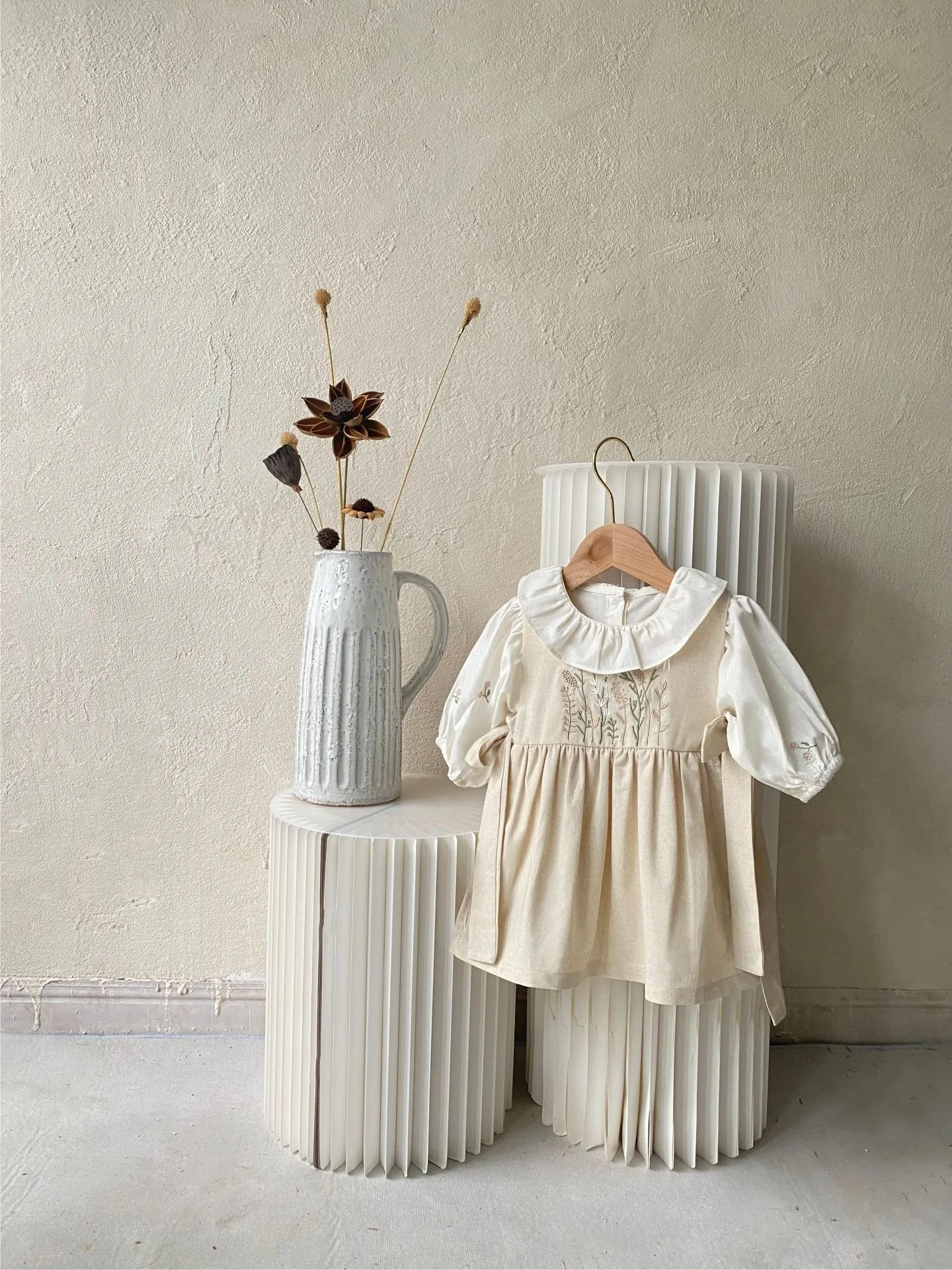 Ideal for special events, casual outings, or family gatherings, this dress is perfect for little ones who want to feel elegant while still having fun. The embroidered butterflies bring a touch of nature into the design, making it a timeless piece that can be worn for a variety of occasions.