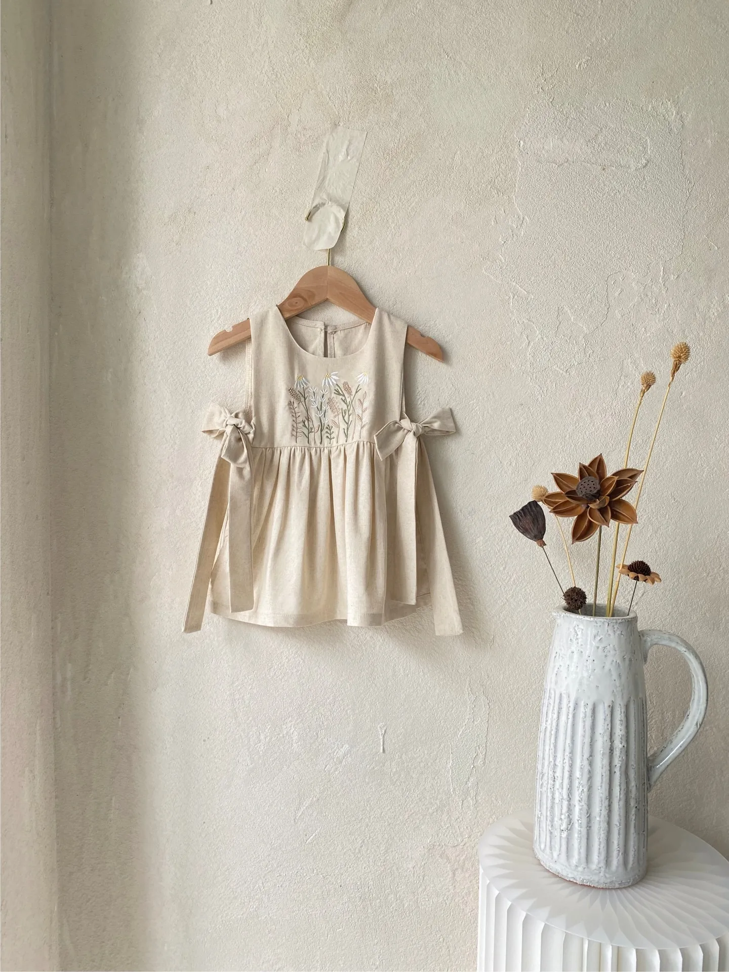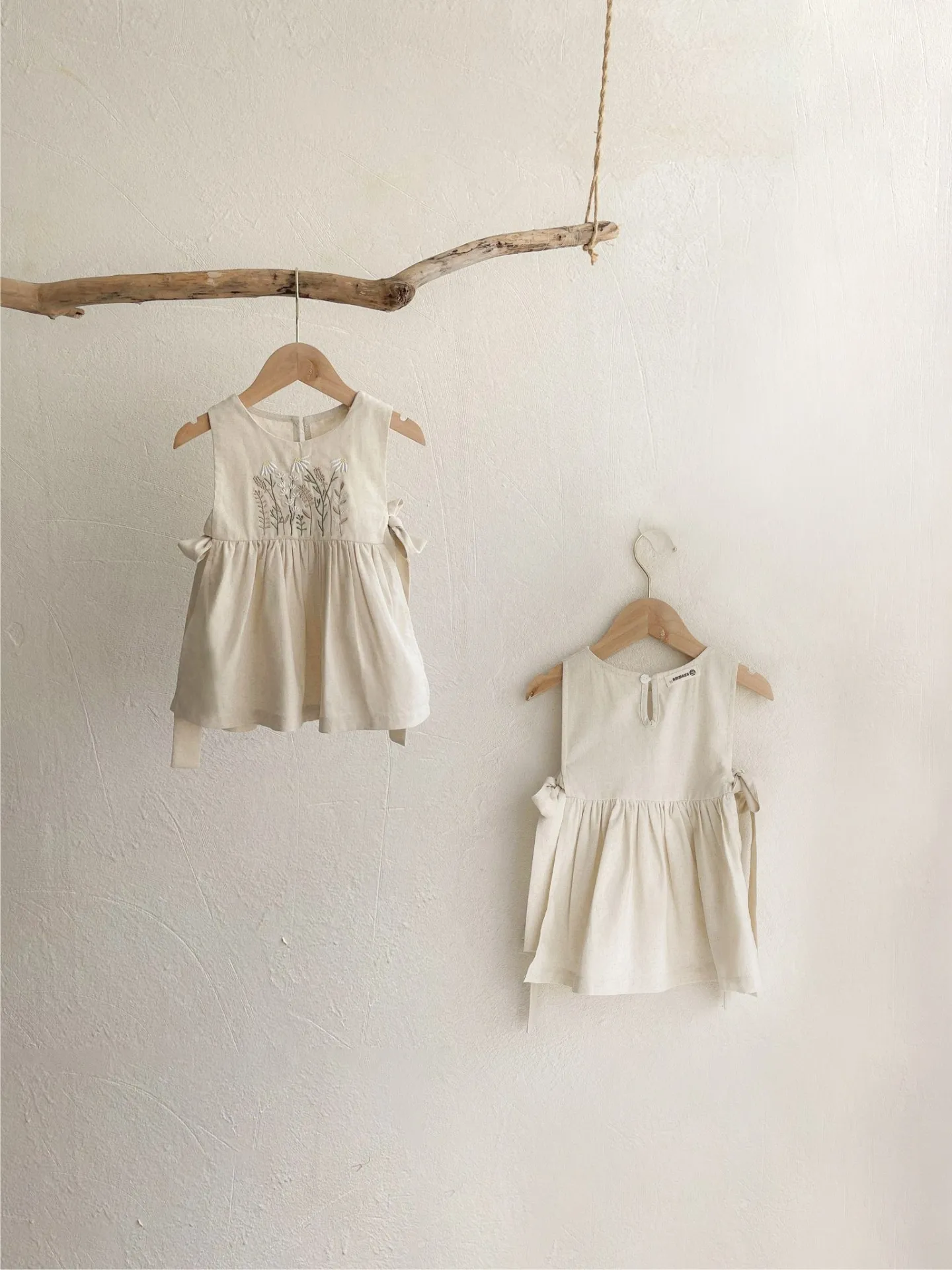 The Embroidered Butterfly Lace-up Skirt Sleeveless Sling Dress is an enchanting and stylish dress that combines delicate embroidery with a charming lace-up detail, creating a look that's both playful and elegant. Designed for young girls, this sleeveless sling dress is perfect for warm weather, offering comfort and style while showcasing a beautiful embroidered butterfly design that adds a touch of whimsy. The lace-up feature in the back ensures a secure fit, making it both a comfortable and fashionable choice for any occasion.
