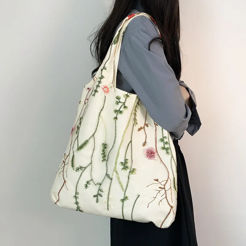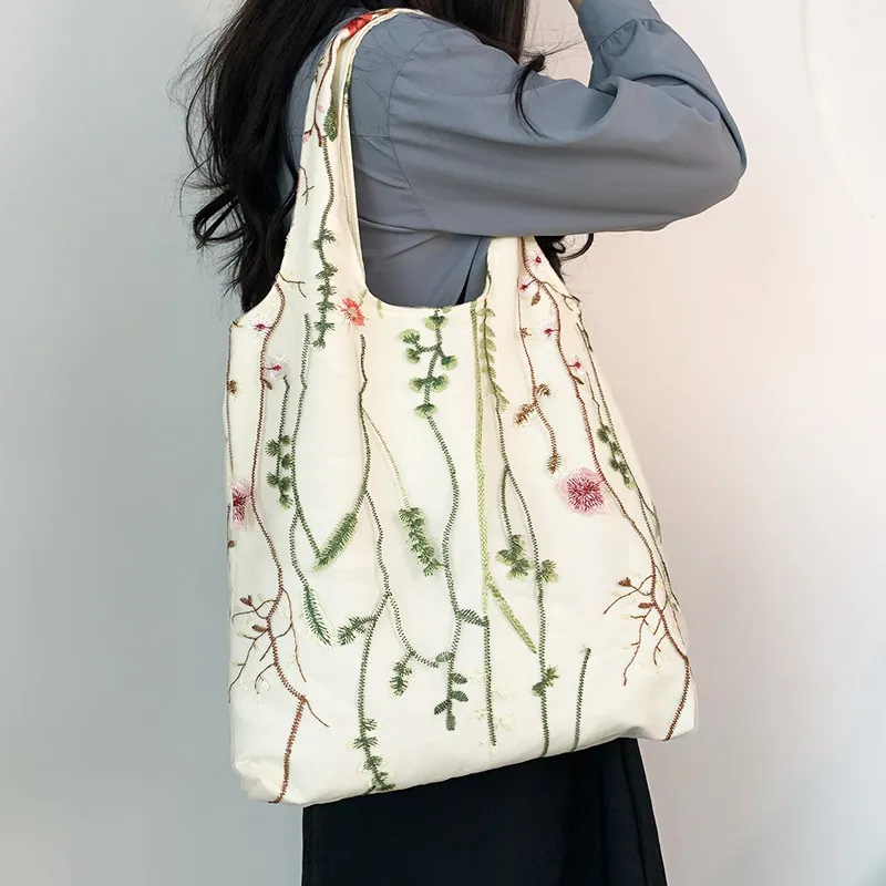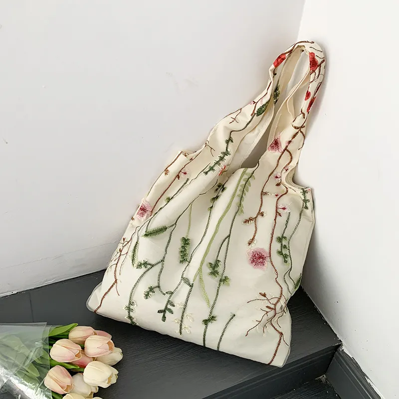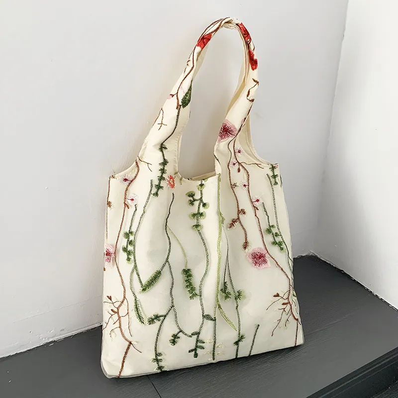 Color: aquatic plant embroidery canvas bag