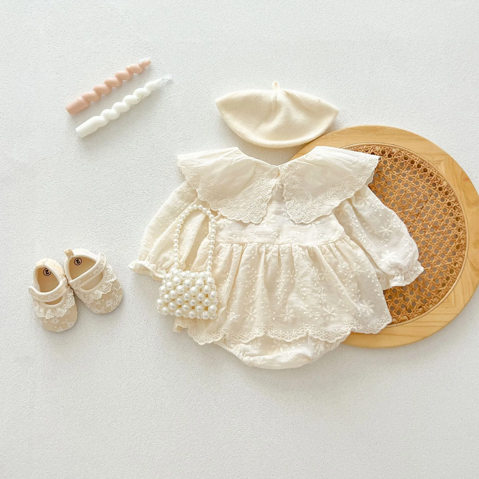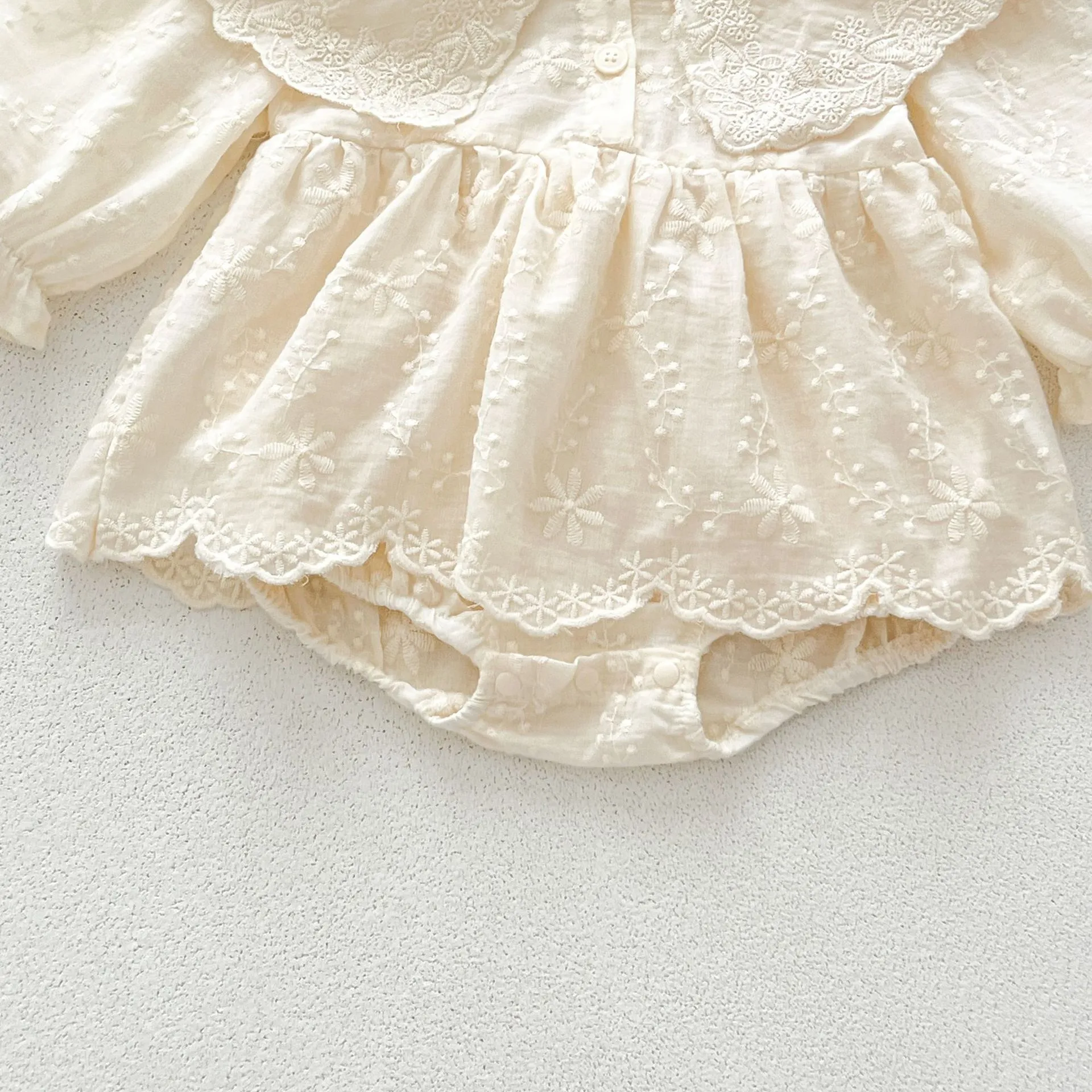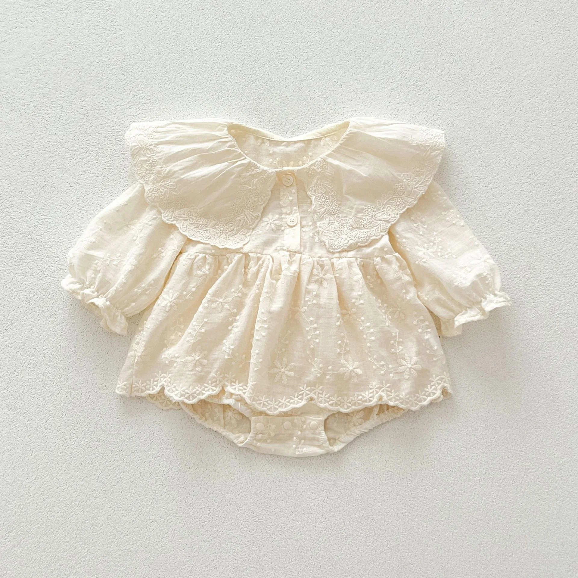 Embroidered Lace Lace Collar Long Sleeve Baby's Gown Baby Jumpsuits