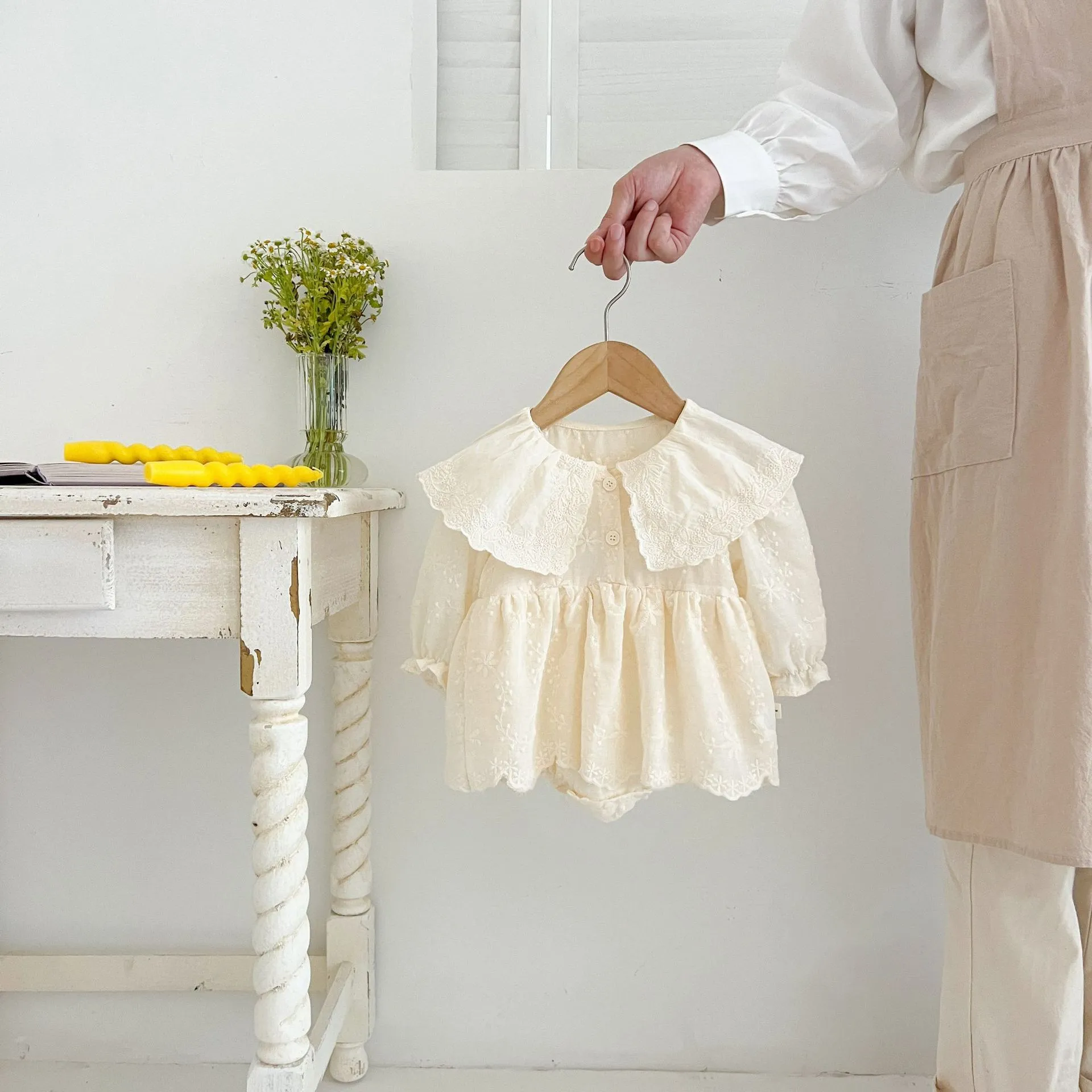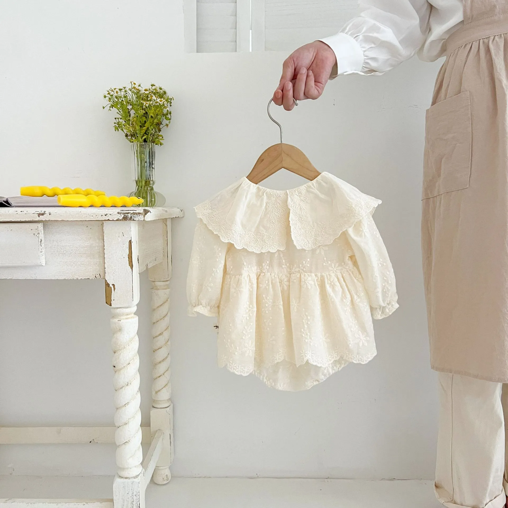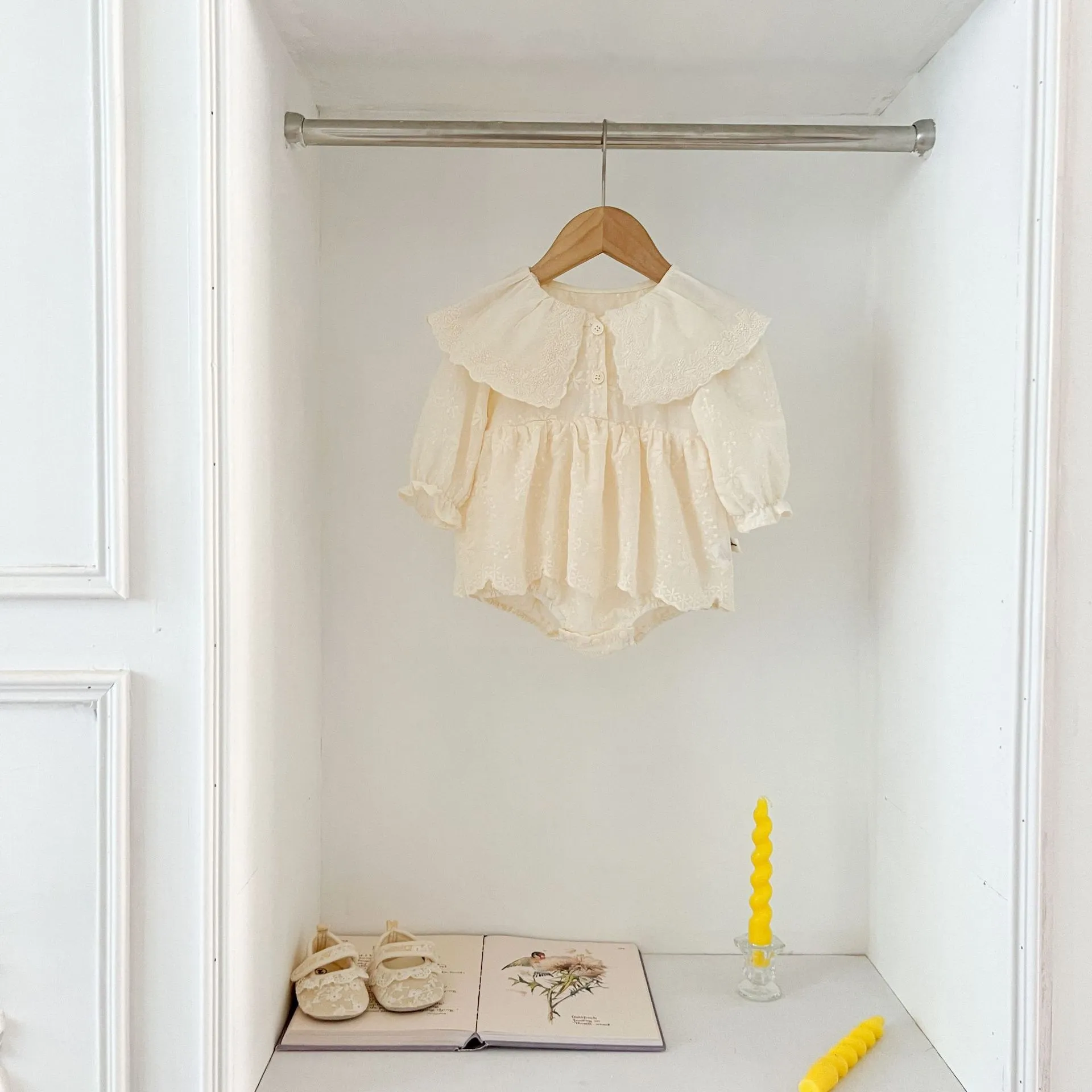 Embroidered Lace Lace Collar Long Sleeve Baby's Gown Baby Jumpsuits
