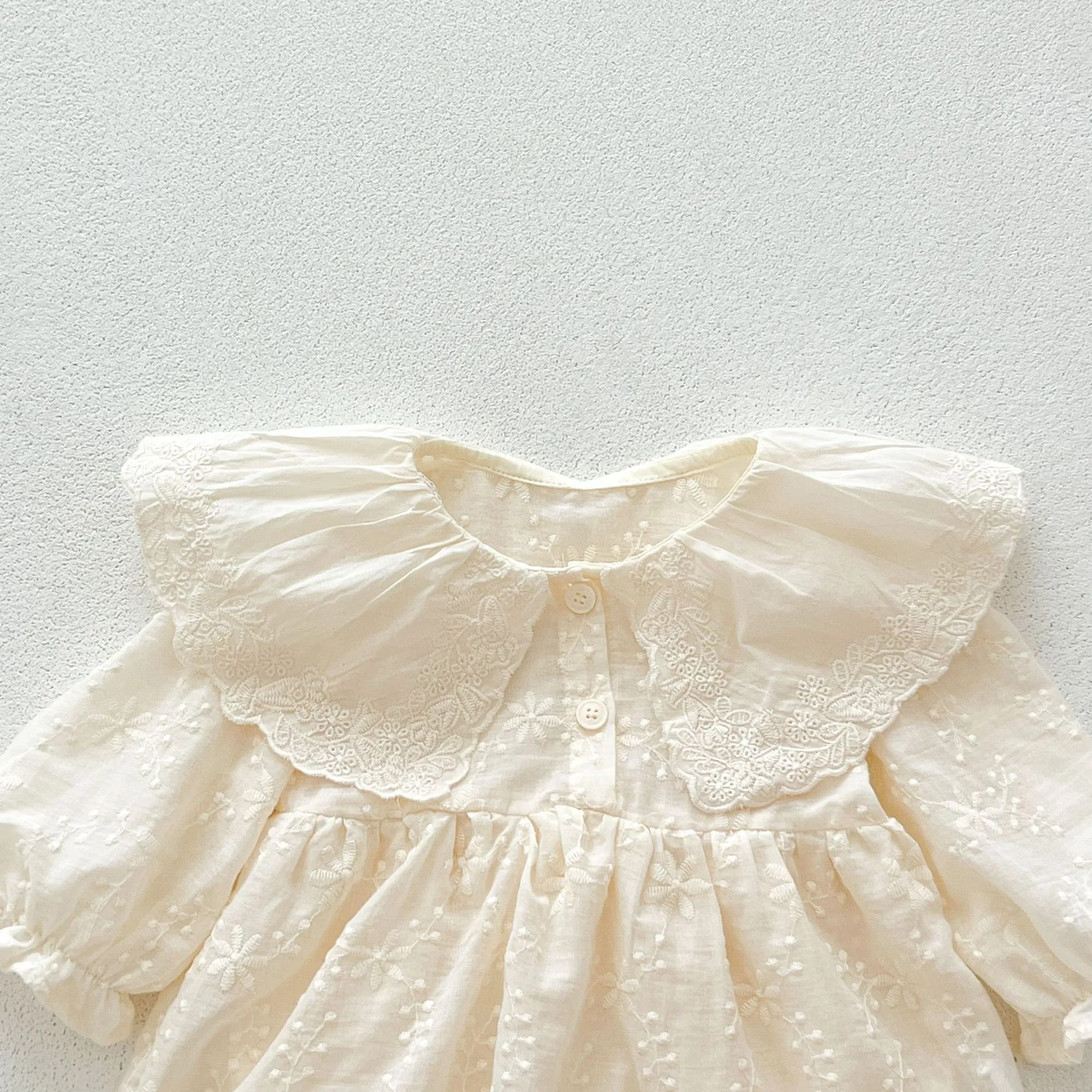 Key Features of the Embroidered Lace Collar Long Sleeve Baby Gown