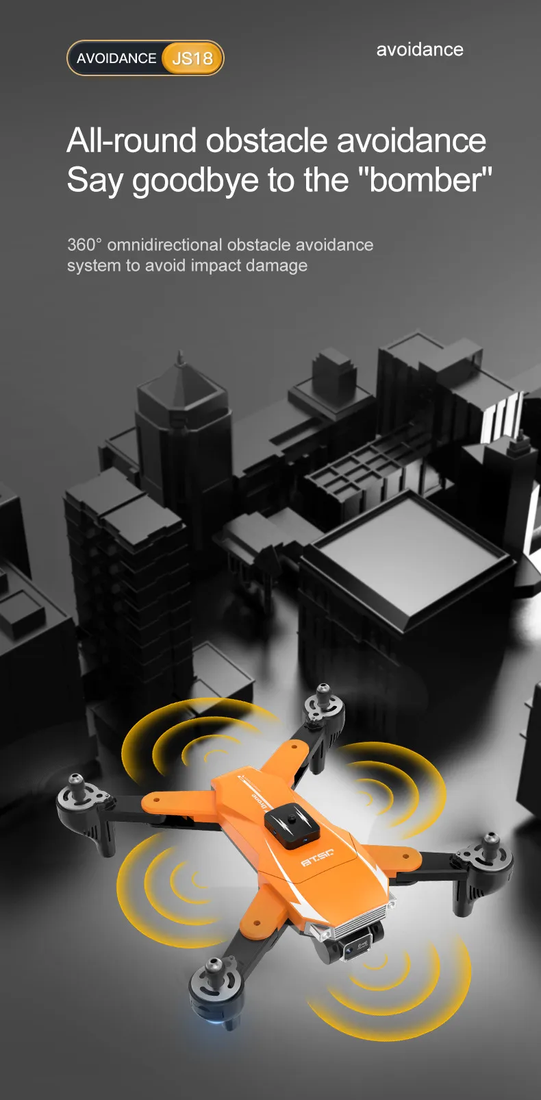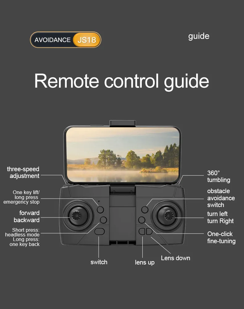 With features like headless mode, speed adjustments, and altitude hold, the JS18 UAV is designed for smooth, stable flights that cater to users of all skill levels. Whether you're a beginner learning to fly or an experienced drone pilot looking for advanced features, the JS18 Obstacle Avoidance UAV offers the perfect combination of convenience, performance, and safety.