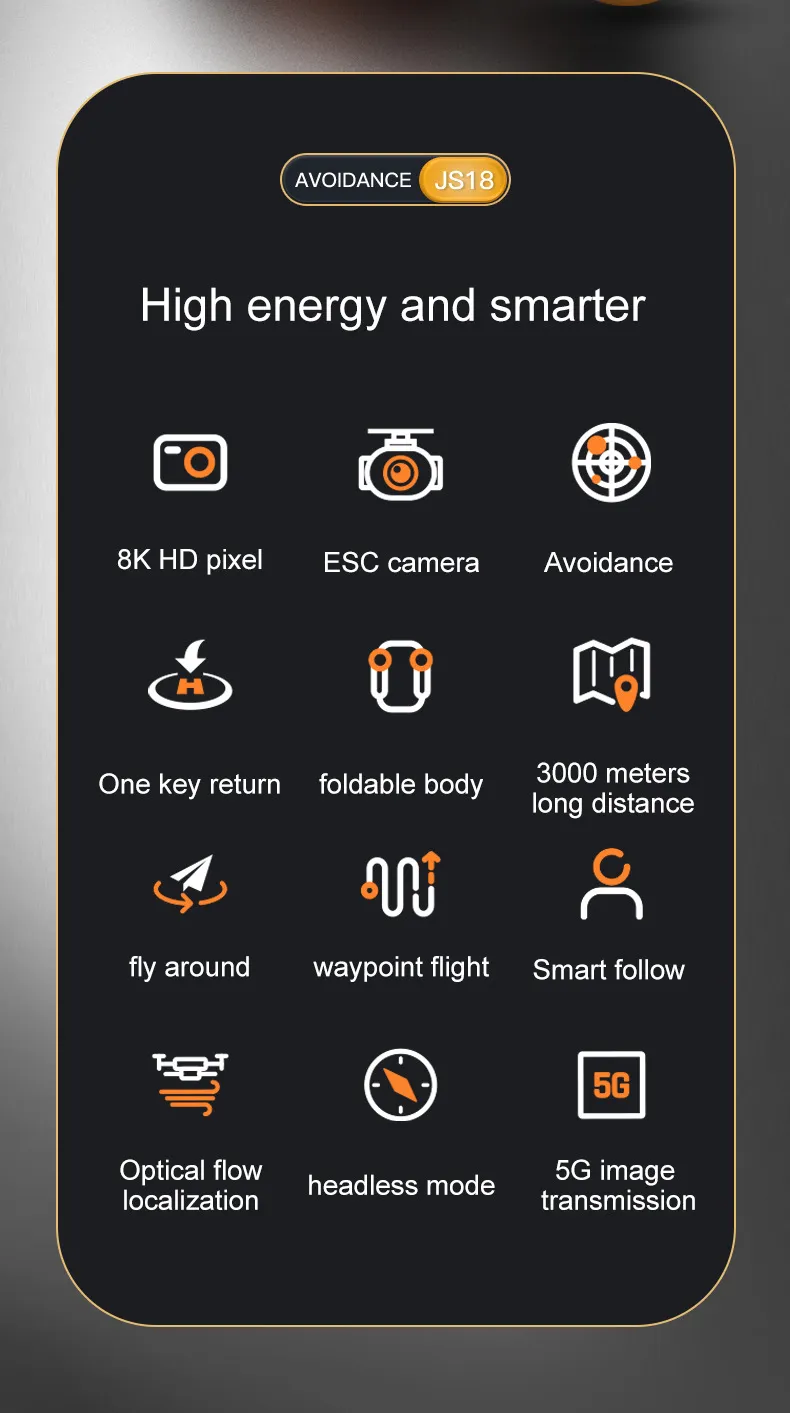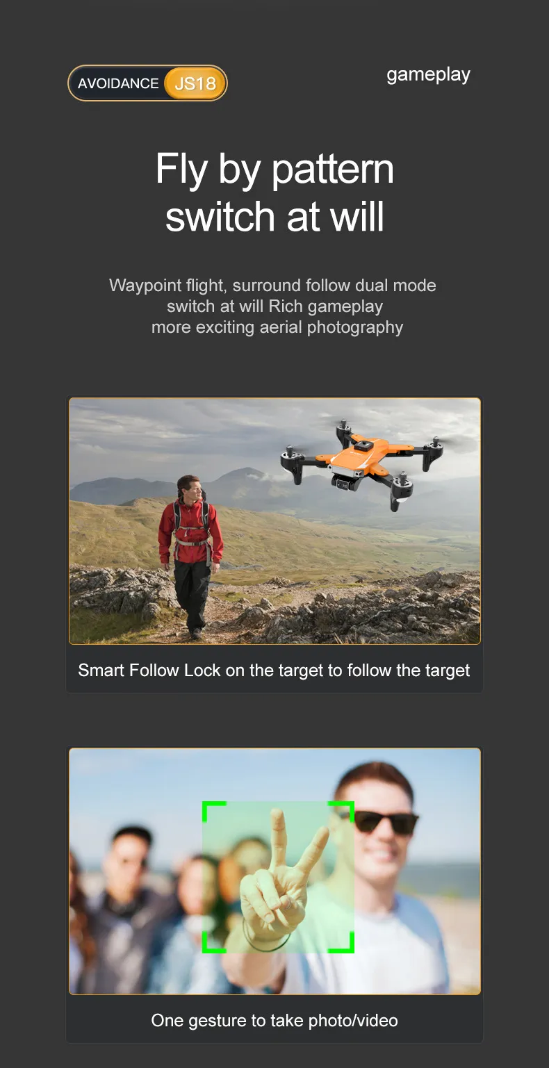 Experience the future of aerial photography and smooth flying with the JS18 Obstacle Avoidance UAV, a cutting-edge foldable drone equipped with advanced features for both beginners and seasoned pilots. Designed for effortless navigation and stunning aerial footage, this drone combines high-quality aerial photography with intelligent obstacle avoidance technology, ensuring smooth, safe flights in any environment. With its sleek, foldable design and powerful features, the JS18 drone is perfect for anyone looking to capture breathtaking photos and videos from the sky.