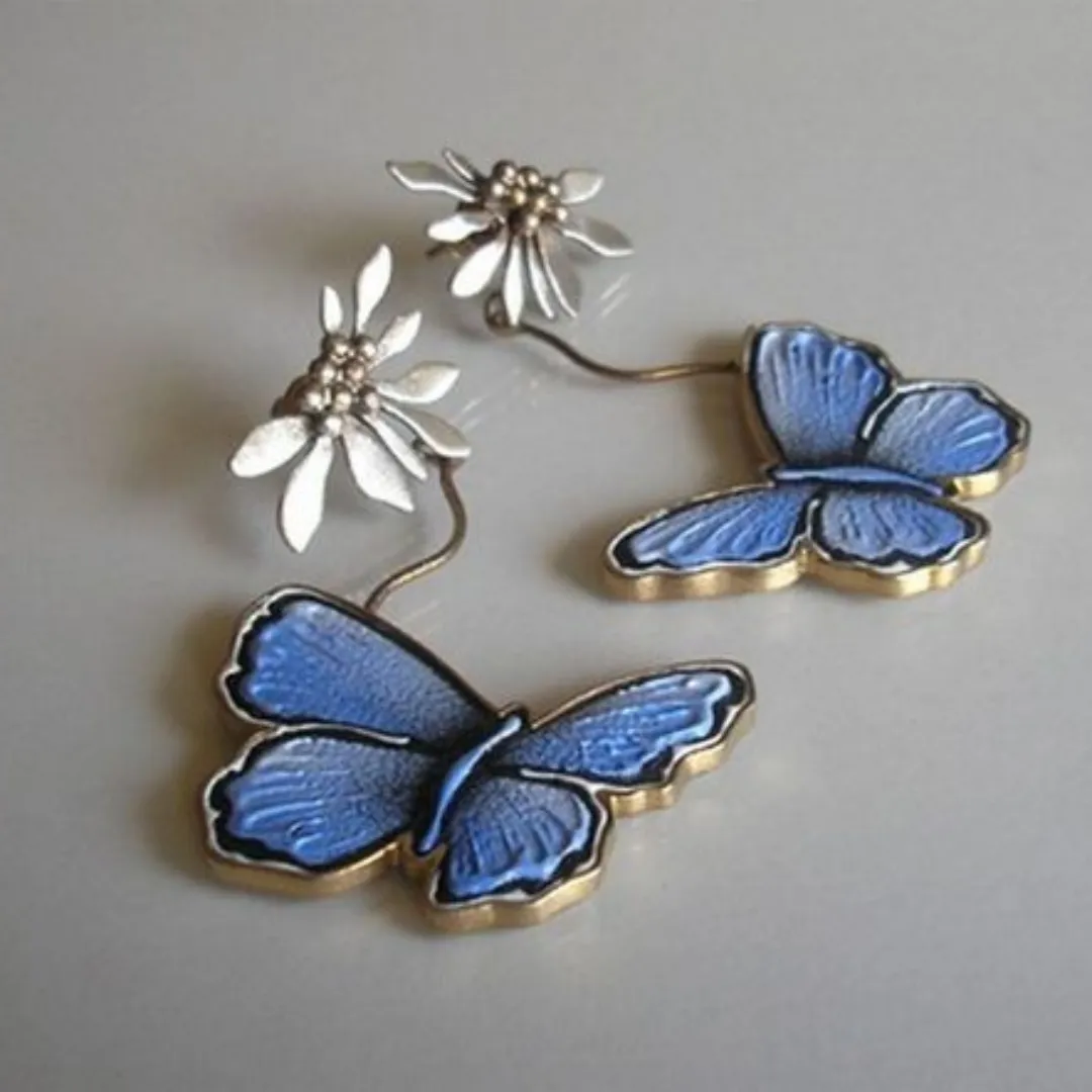 Epoxy Butterfly And Flower European And American Popular Retro Imitation Thai Silver Earrings