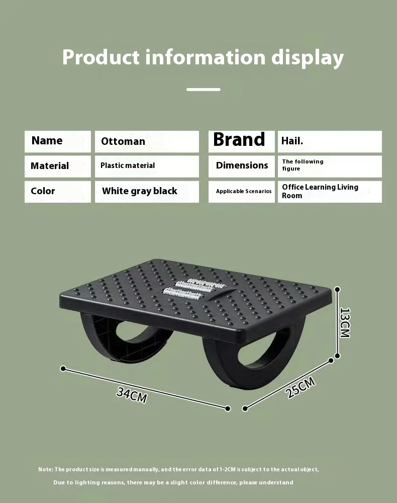 prolonged sitting. Made from durable, high-quality materials, this footrest offers stable, non-slip support and can handle regular use