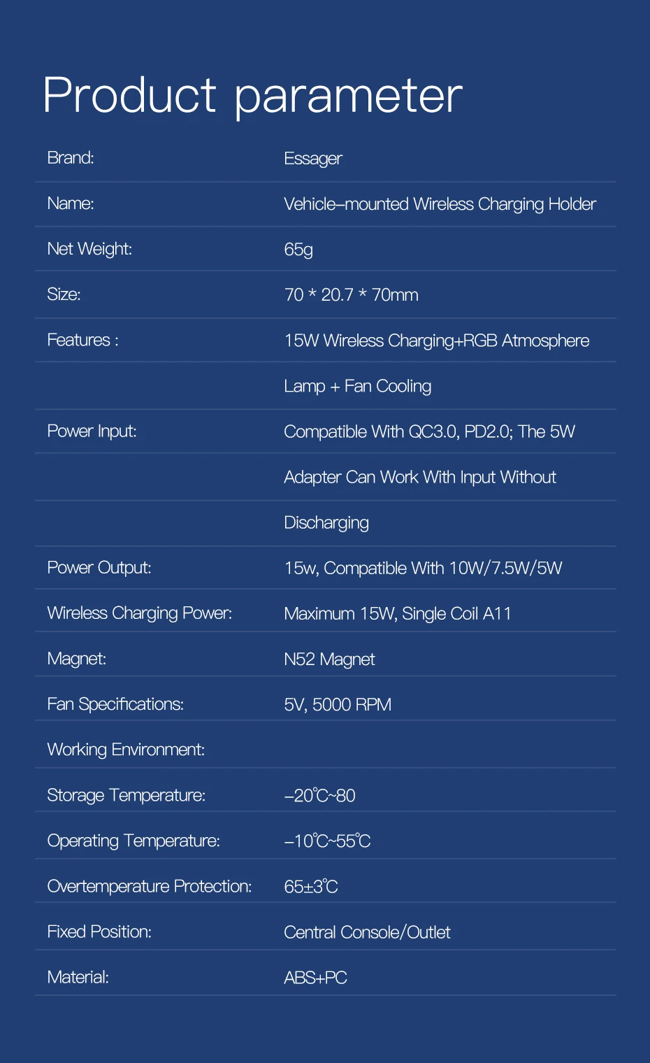 The Essager RGB Magnetic Car Phone Holder Qi 15W Wireless Charger is an essential accessory for anyone who needs reliable phone mounting and fast charging while driving. Its sleek design, strong magnetic hold, 15W fast wireless charging capabilities, and customizable RGB lighting make it a perfect choice for both iPhone and Samsung users. Whether you’re on a long road trip or a short commute, this charger ensures your phone stays secure and fully charged, providing convenience and efficiency in one stylish package. Invest in the Essager RGB Magnetic Car Phone Holder and experience the benefits of advanced charging technology on the go.