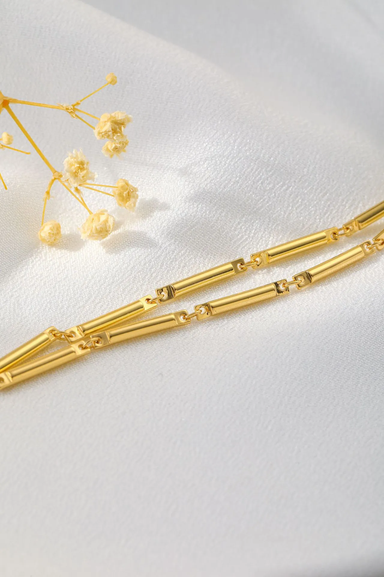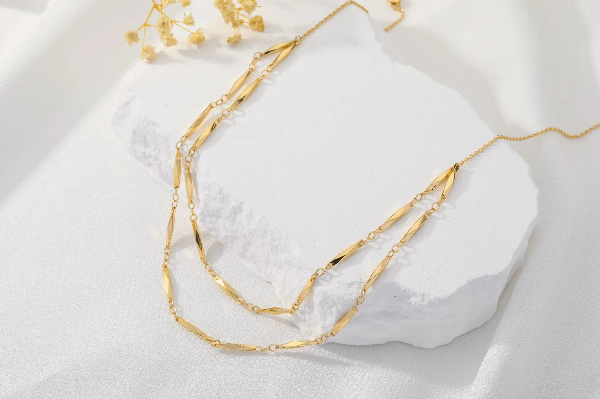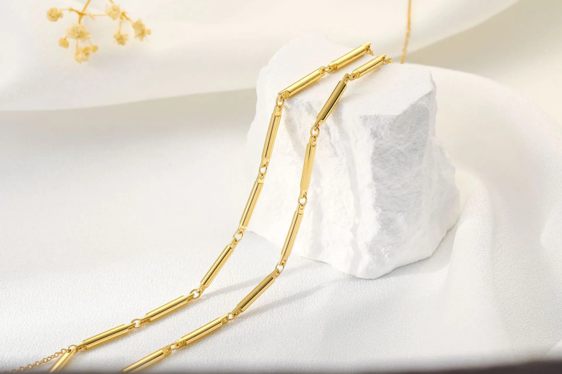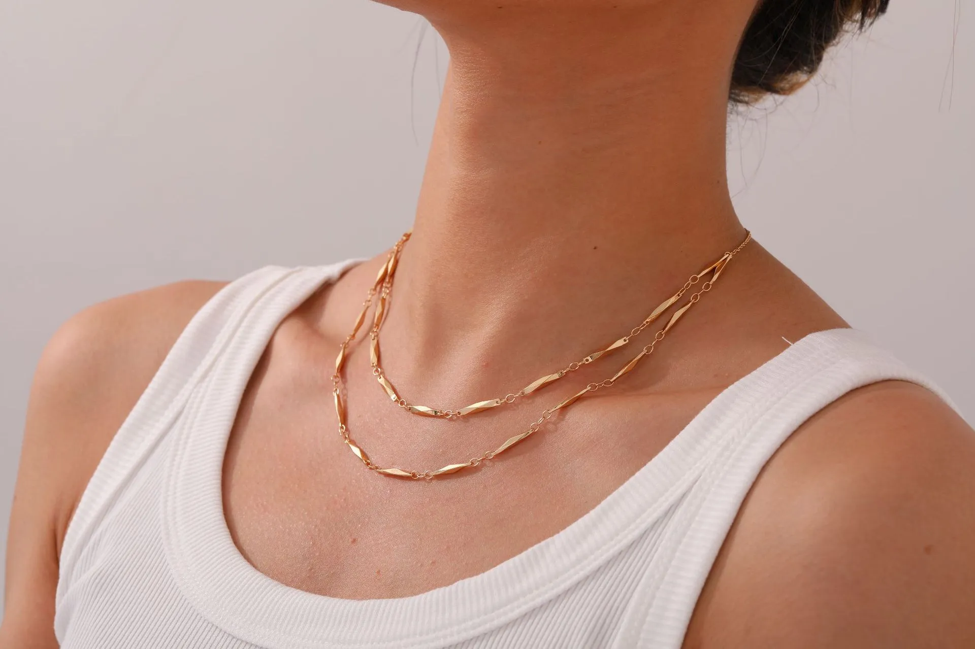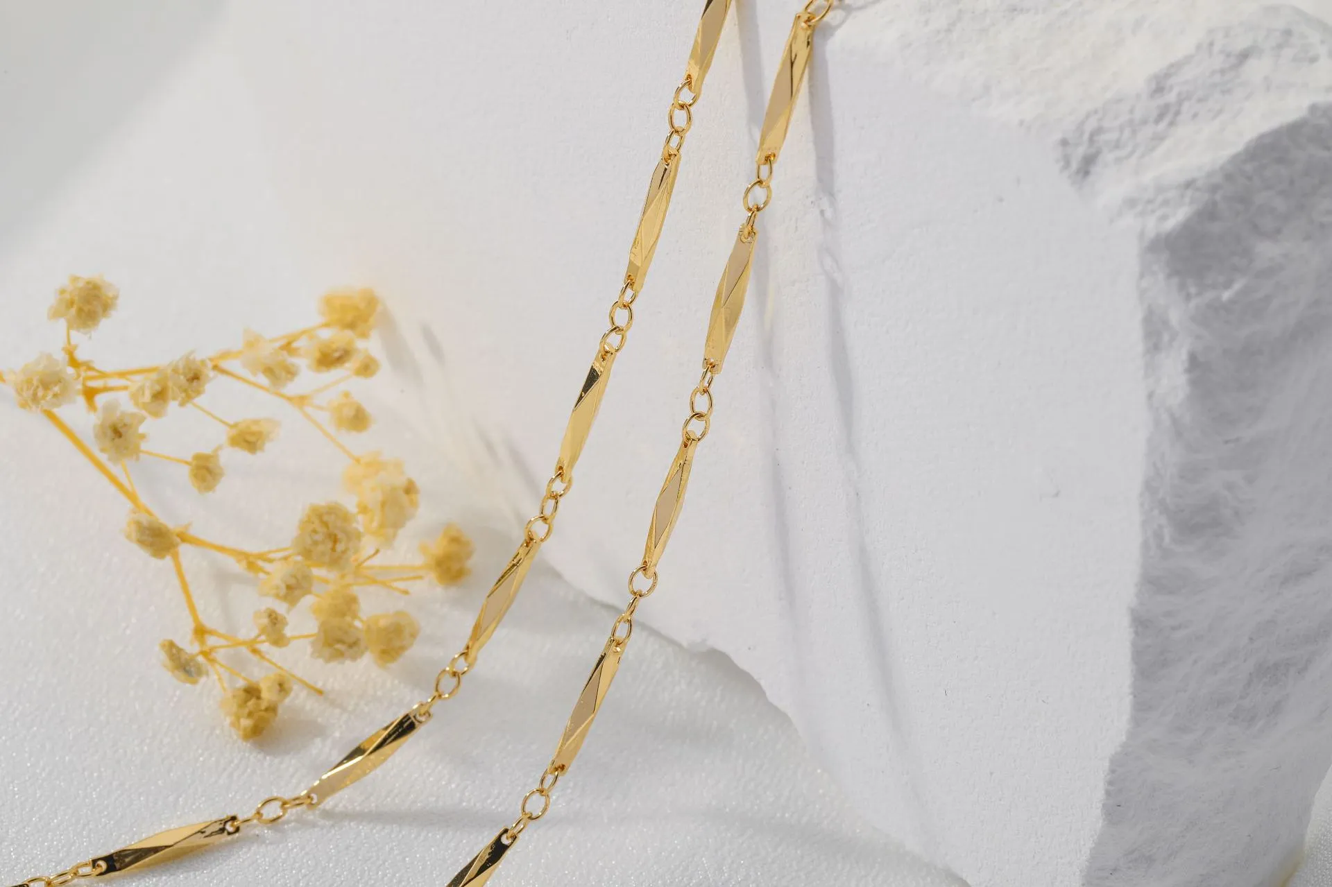 The melon seed design of the necklace reflects sophistication and style. Each link is meticulously crafted to resemble a melon seed shape, giving the chain an intricate texture that shines beautifully in any light. The diamond-like accents within the design add a touch of elegance, making it a perfect accessory for both day-to-day wear and special occasions.