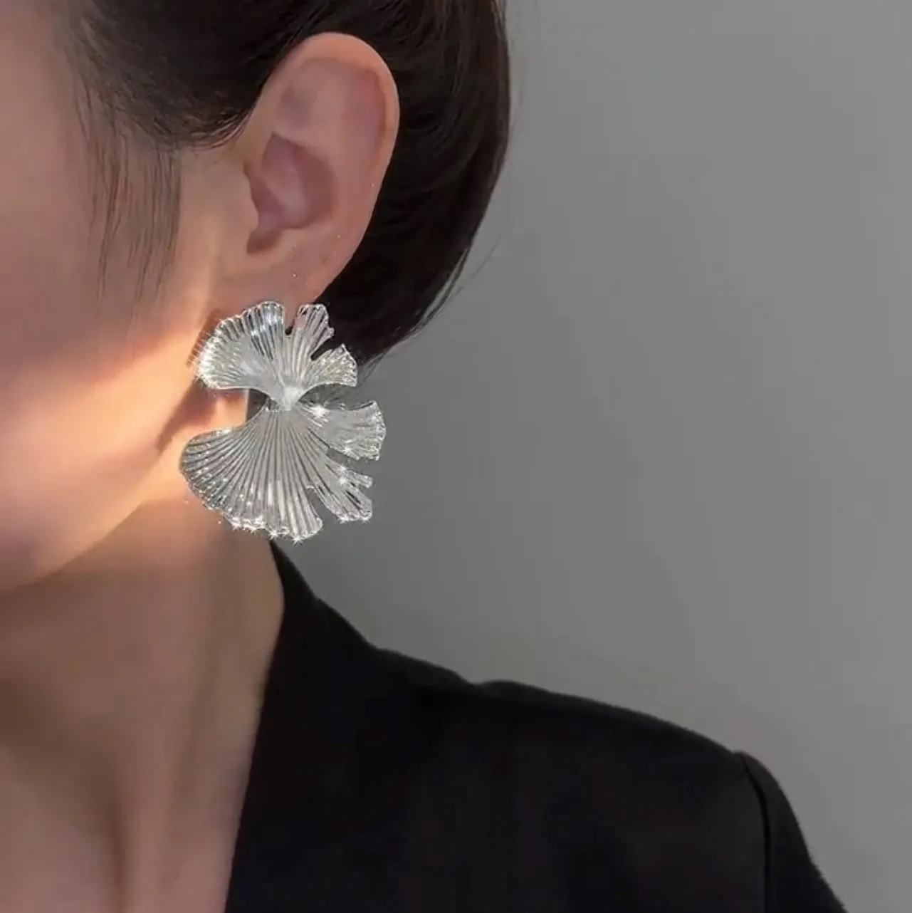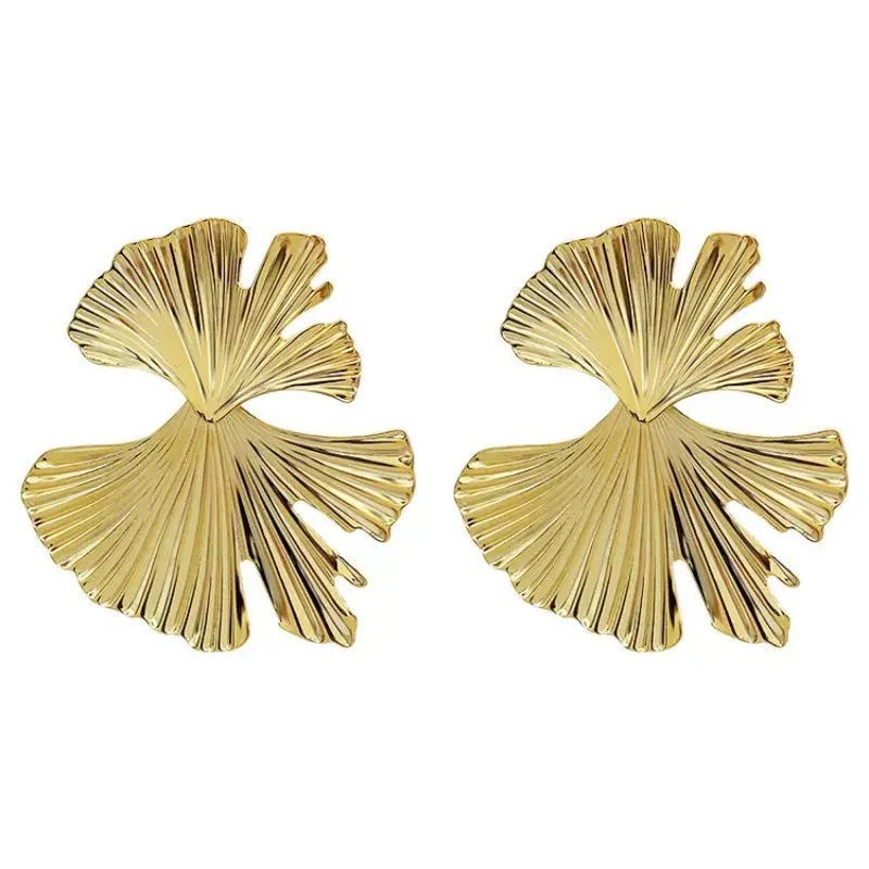 European And American Exaggerated Design Ginkgo Leaf Earrings