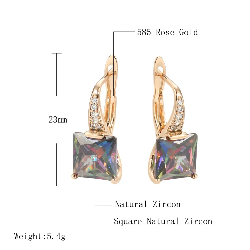 The color zircon used in these earrings is known for its brilliant sparkle and vivid hues. Unlike traditional clear diamonds or cubic zirconia, color zircon offers a rich range of shades, including vibrant reds, blues, greens, and yellows, which adds depth and dimension to the earrings. The vibrant color of the zircon stones, paired with their diamond-like brilliance, creates an eye-catching effect that draws attention wherever you go.